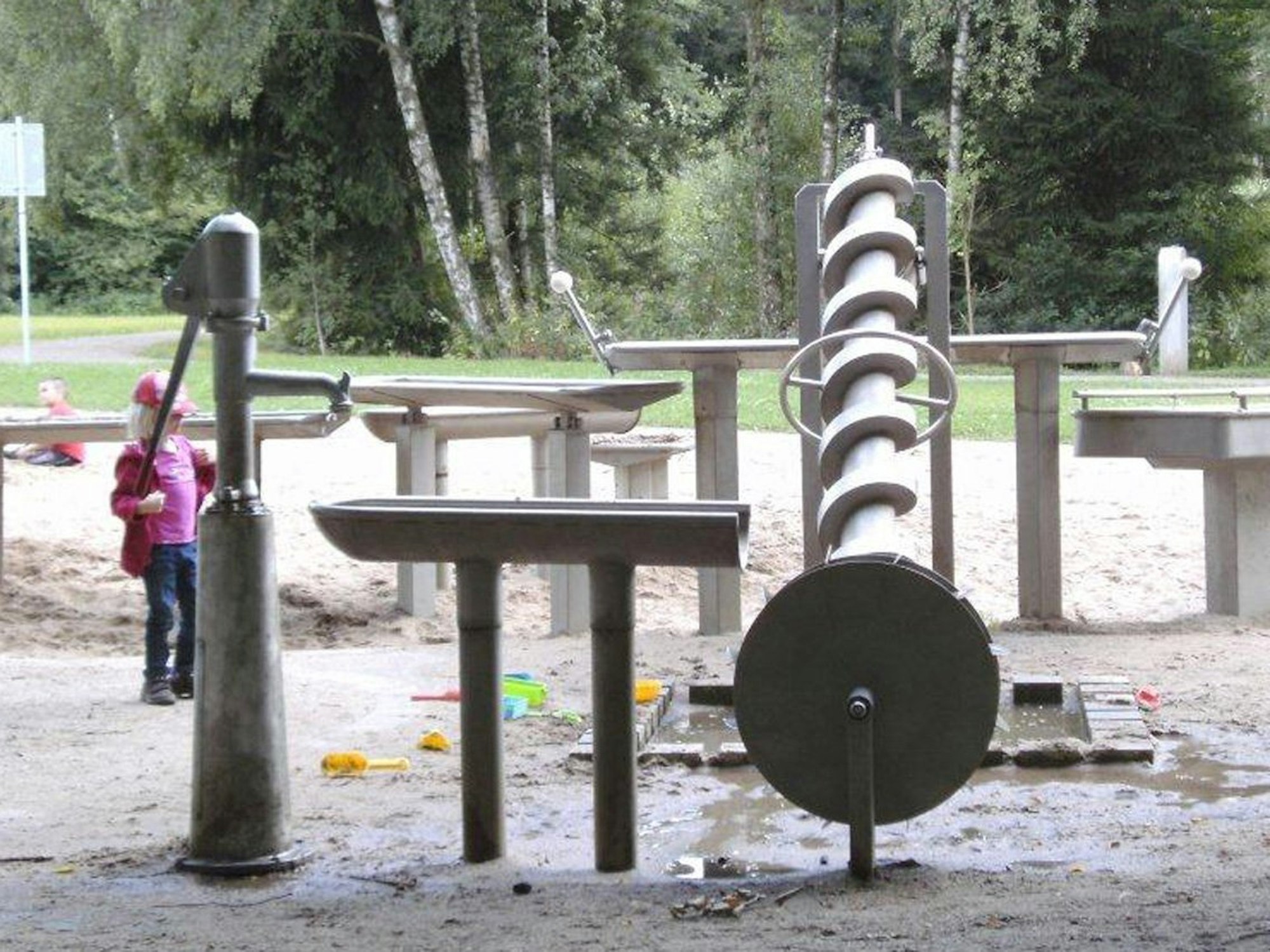 Spiel und Spaß: Der weitläufige Spielplatz mitten im Grünen ist vor allem für jüngere Kinder sehr einladend. Es gibt dort Reifenschaukeln, ein Trampolin, Klettergeräte, Sandkästen, eine Rutsche, eine Brücke und eine Drehscheibe. Zwei archimedische Spiralen laden Kinder zum Wasserspiel ein. Sie befinden sich direkt am künstlich angelegten Bachlauf.