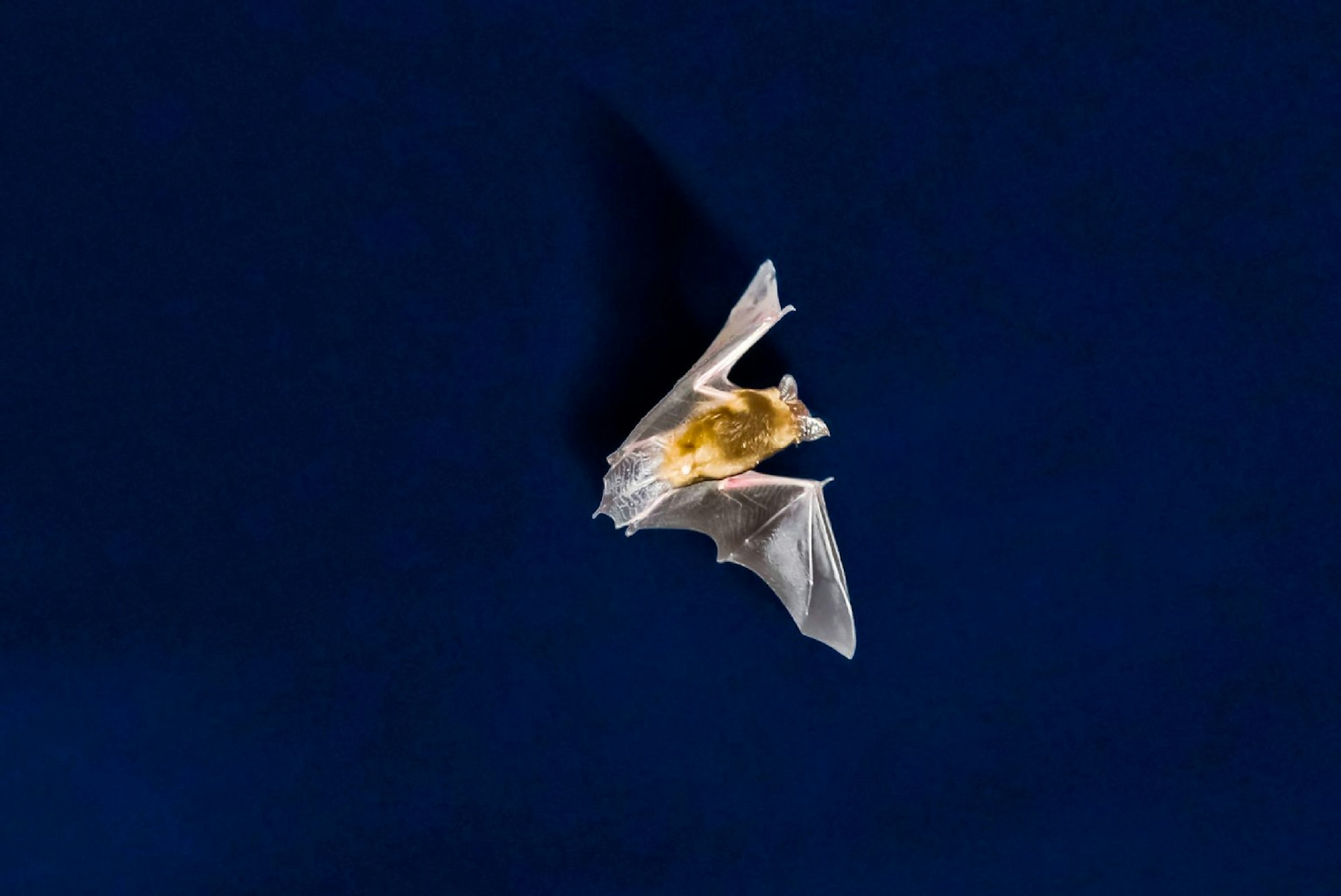 Eine Fledermaus am nächtlichen Himmel auf der Jagd nach Insekten.
