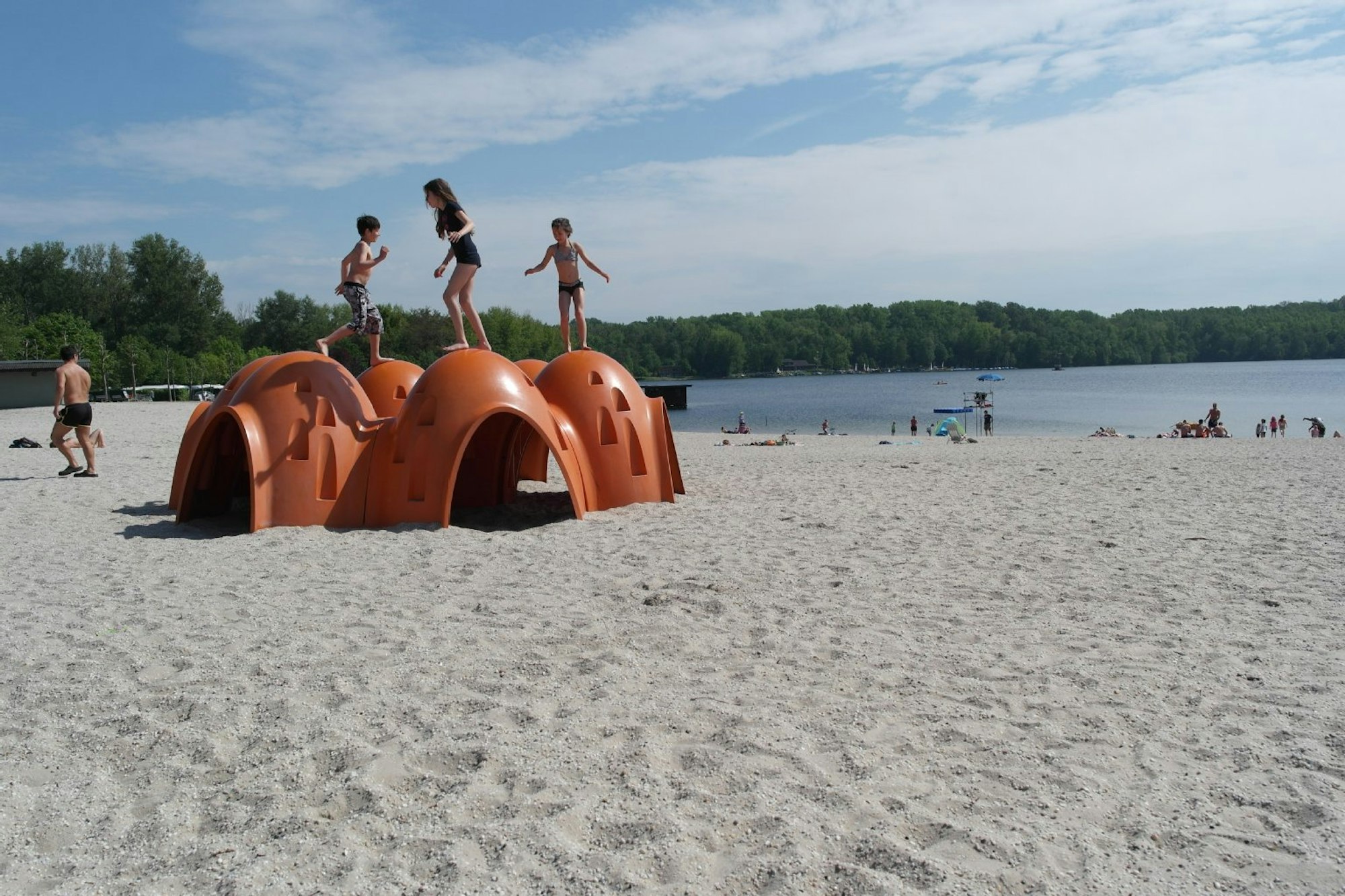 Atmosphäre: Der Campingplatz ist gleichzeitig ein Strandbad, mitten im Naturpark Kottenforst-Ville gelegen und fast vor der Haustür – nur 15 Kilometer von Köln entfernt. Kein Wunder, dass der, der hier hinkommt, immer wieder kommt. Es gibt Dauercamper, die in der zweiten Generation seit 40 Jahren ihren Zweitwohnsitz hierhin verlegt haben. In dem seit 1966 liebevoll geführten Familienbetrieb fühlen sich Familien mit Kindern genauso wohl wie Rentnerpärchen oder Jugendliche, die früher mit Eltern, jetzt mit Clique samt tragbaren CD-Playern kommen – und abends zum Sundowner an den Strand gehen.