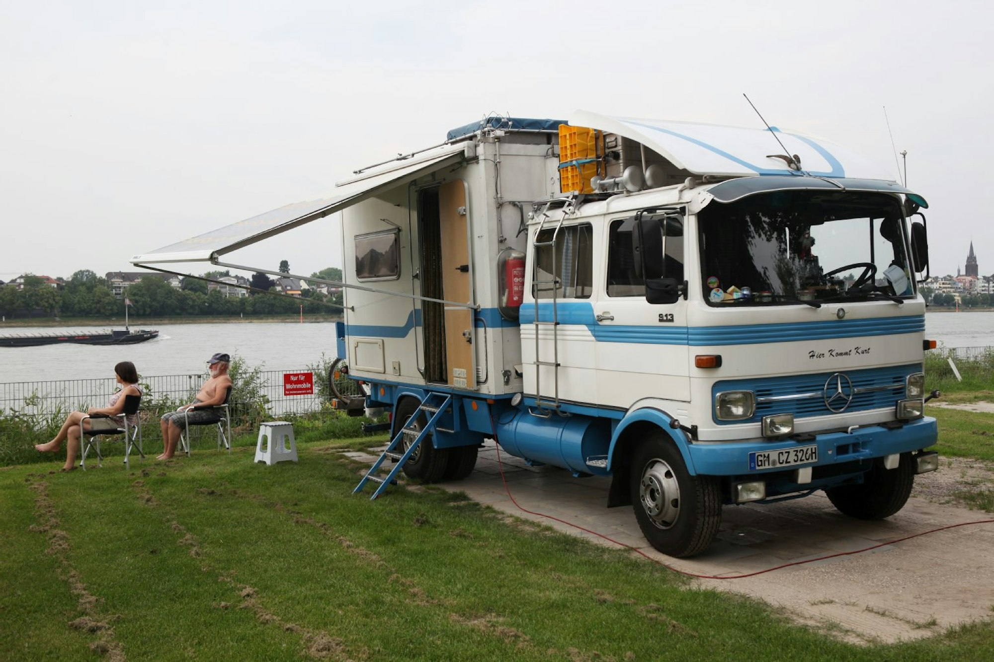 Atmosphäre: Überschaubarer Campingplatz, in einem Landschaftsschutzgebiet (kein Abwassersystem). Hier wird auf der grünen Wiese gecampt – das heißt es gibt keine Parzellierung. Insgesamt ist der Platz sehr gepflegt. Die Aussicht auf den Rhein entschädigt für die Autogeräusche von der Rodenkirchener Brücke.