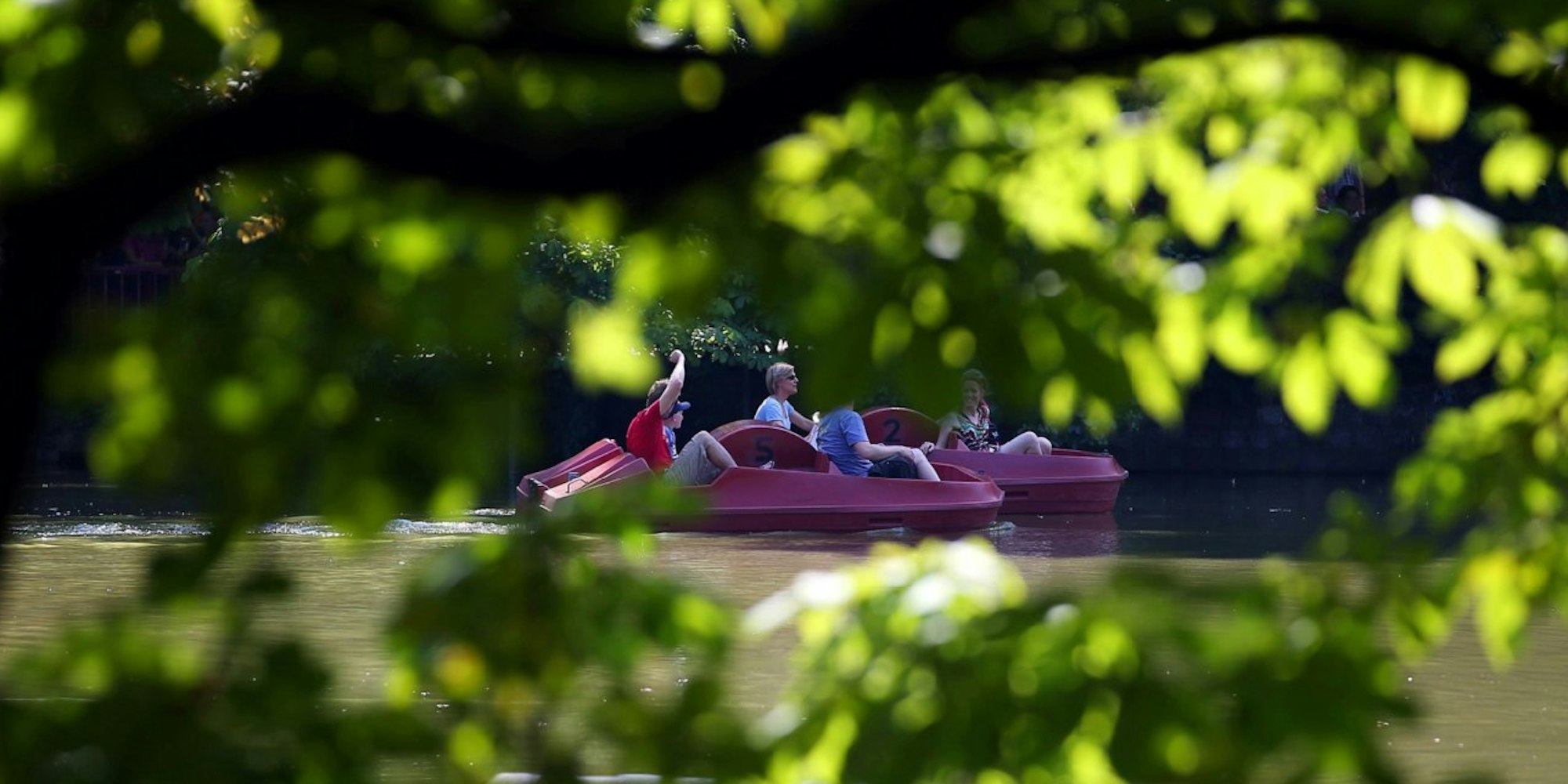 Eine Familie beim Tretbootfahren im Park.