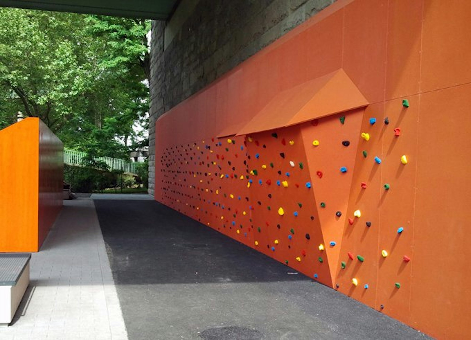 Eine Kletterwand am Brückenpfeiler der Zoobrücke.