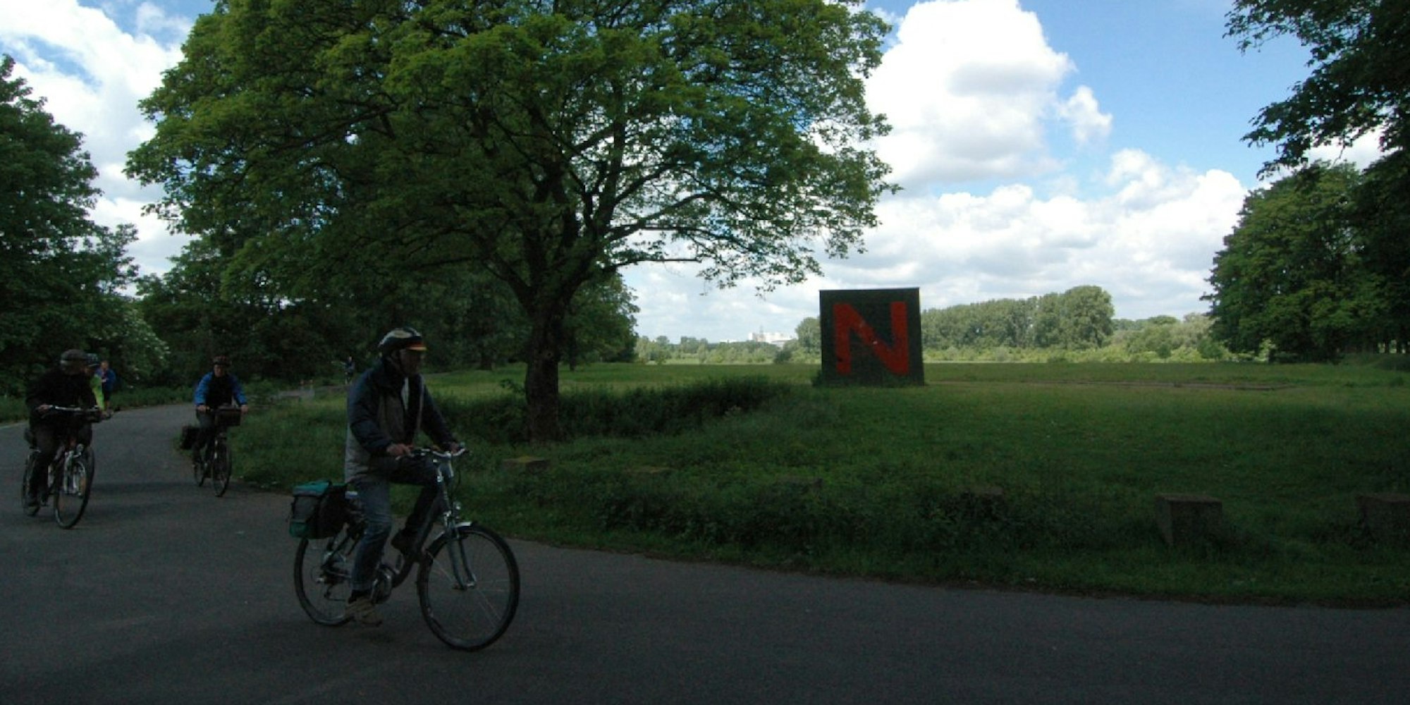 Neuss – Was hat bloß dieses „N“ zu bedeuten? Neugier vielleicht, die der zweieinhalb Meter hohe Metallwürfel mitten in der Landschaft durchaus erregt. Oder doch Neuss? Schließlich steht der Kubus genau dort in der Nähe des Sporthafens am Rheinufer. Des Rätsels Lösung: Das „N“ steht für Nordkanal-Fietsallee. Die gleichnamige Fahrradfernstrecke bis ins niederländische Nederweert beginnt genau hier.