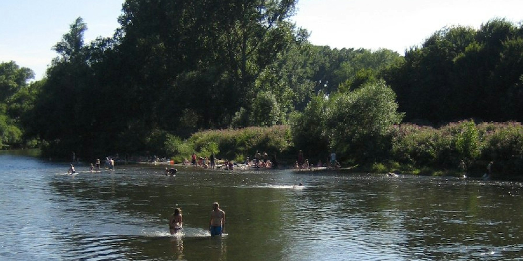 So wie der gefiederten Postbotin geht es vielen Sommerfrischlern, die sich rund um die Anlegestellen am Bonn-Geislarer und dem Troisdorf-Bergheimer Ufer Erholung gönnen. Sie kommen – und bleiben länger als erwartet. Sonnenanbeter machen sich auf Wiesen und Kiesstränden breit, Kinder planschen im flachen Wasser und fläzen sich in Gummibooten. Familien und Freundescliquen haben es sich mit Decken und Picknickkorb gemütlich gemacht. Alte Bäume spenden Schatten, am Bergheimer Ufer liegt das Ausflugslokal „Zur Siegfähre“, mit Biergarten und gutbürgerlicher Küche.