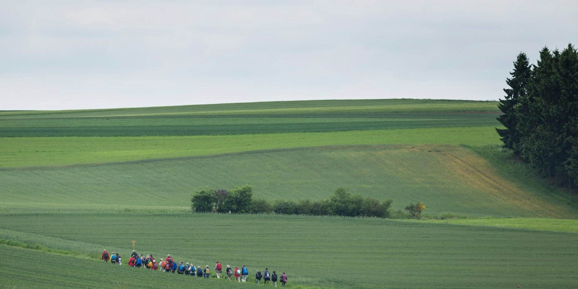 Nach vielleicht einer guten halben Stunde stimmt Pilgerführer Krons, Sozialarbeiter im Ruhestand, ein fröhliches Halleluja an. Das Zeichen, dass ab sofort wieder geredet werden darf. Manche setzen die Strecke trotzdem schweigend fort.