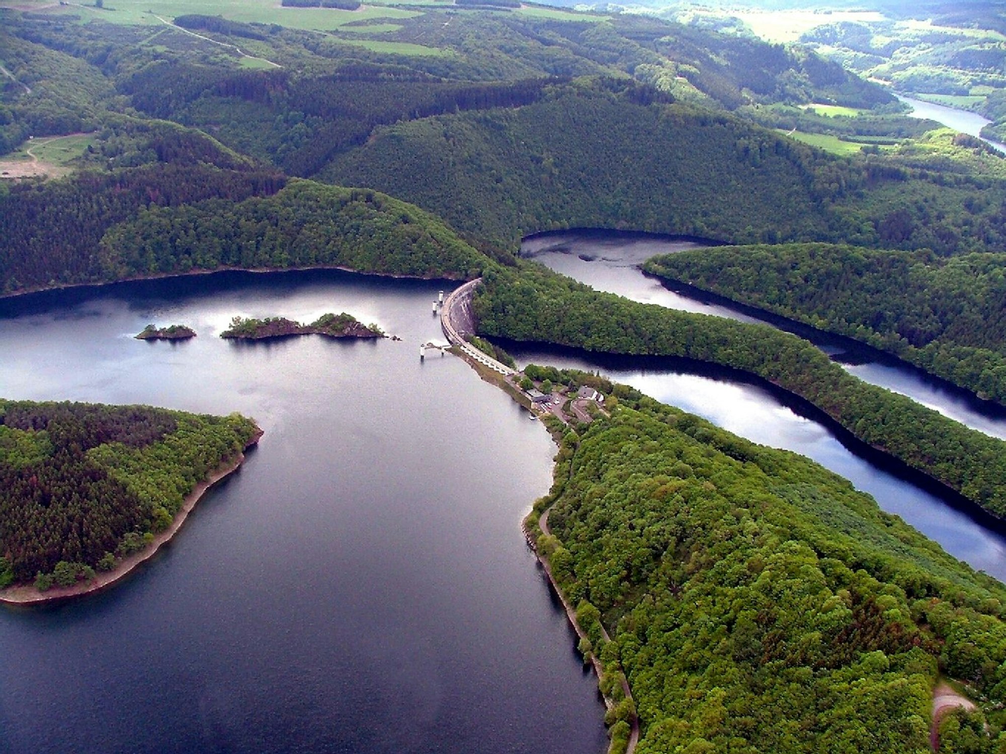 Die zweitgrößte Talsperre der Bundesrepublik liegt nur eine halbe Autostunde von Aachen entfernt. Inmitten des Nationalparks Eifel bildet die Rurtalsperre Schwammenauel zusammen mit dem Obersee und dem Urftsee die Eifeler Seenplatte. Hier kommt nicht nur das Trinkwasser für etwa eine Million Menschen her: In zwei Kraftwerken werden jährlich etwa 46 Millionen Kilowattstunden Strom erzeugt. Die Rurtalsperre wird aber auch besonders wegen ihrer malerischen Umgebung als Freizeitparadies geschätzt.