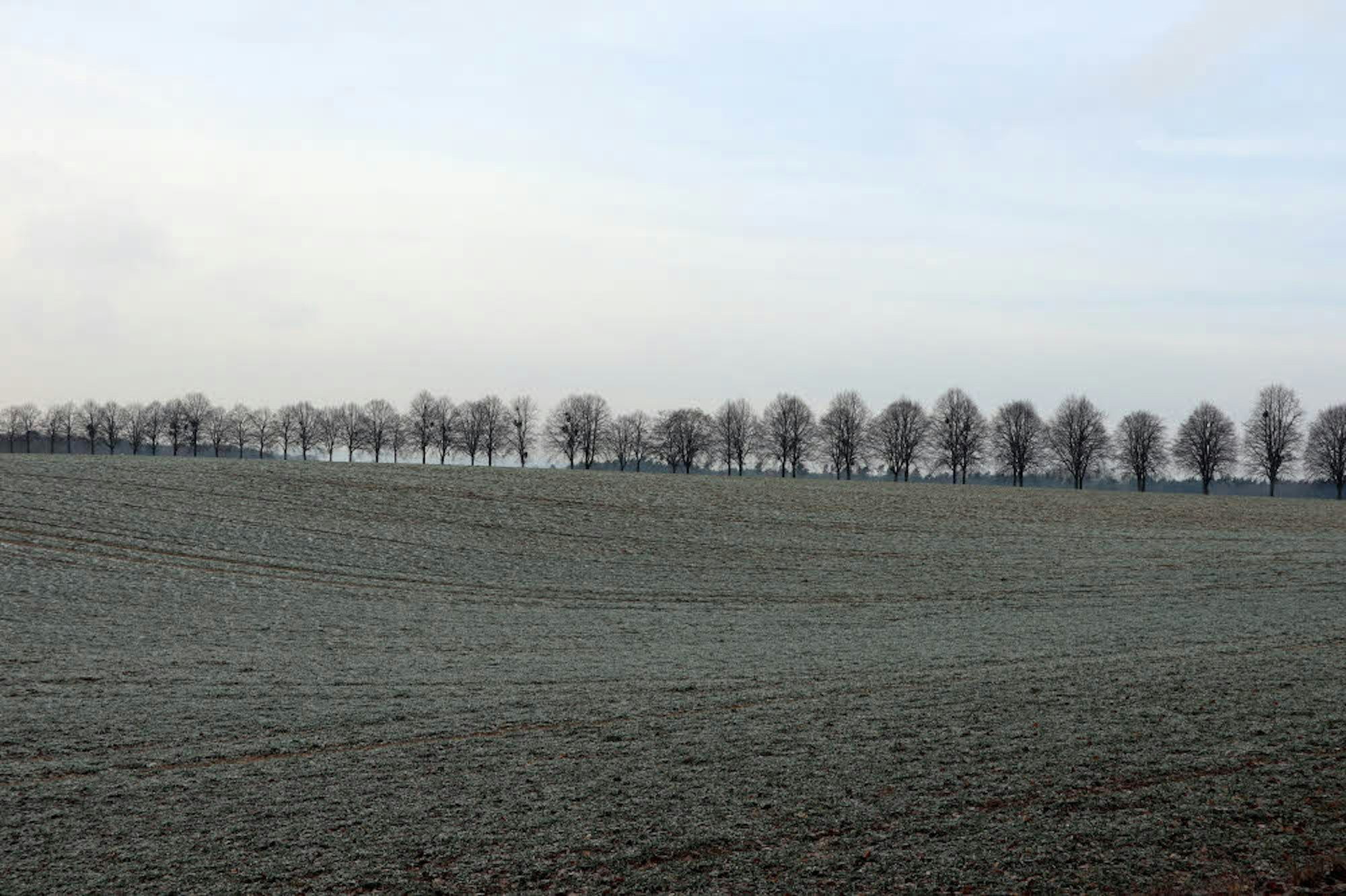 Raureif liegt über dem Land auf den Rheinhöhen um Bad Breisig.