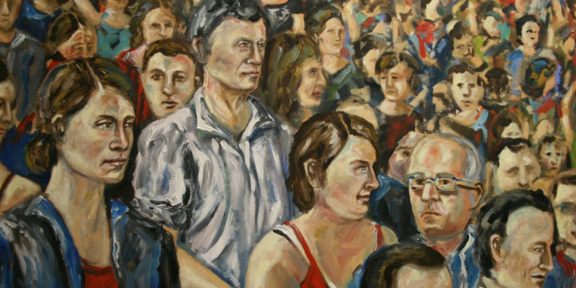 Künstlerin Anna Többen zeigt realistische malerische Studien zum Menschen in der Menge.