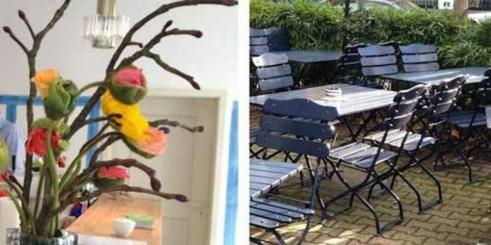 Klar, man kann hier auch nur einen guten Kaffee trinken. Aber vor allem die leckere italienische Küche und das Sea Food sind einen Stopp-Over auf der großen überdachten Terrasse wert. Sie liegt nicht vor, sondern hinter dem Lokal - man muss also einmal durchs ganze Restaurant gehen - und überrascht mit ihren Ausmaßen und den vielen Sitzgelegenheiten. Von hier aus kann man zwar nicht auf der Dürener Leute gucken, dafür hat man aber auch drinnen manchmal gutes people watching. Oder die Aussicht auf ein bisschen Grün mit Springbrunnen zu köstlichem Fisch. (Maria Dohmen)