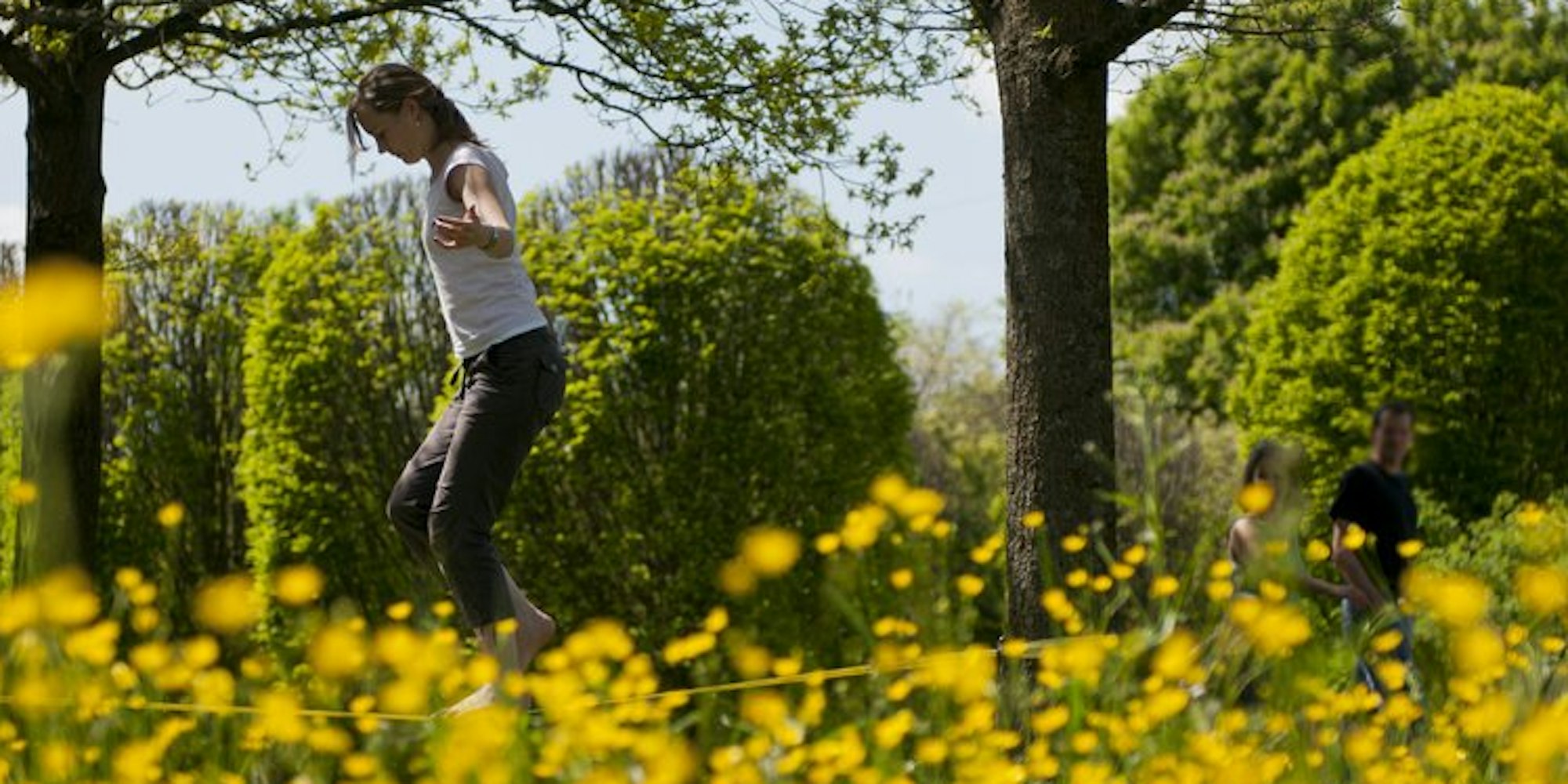 Ich habe nicht mal gelesen – zu beobachten gab es ja genug. Für die folgenden fünf Stunden habe ich mein ganz persönliches Universum auf das indische Wandtuch begrenzt, auf dem ich saß, und mein inneres Gleichgewicht dem der Slackliner angepasst. Mehr nicht. Und dabei hatte ich das Gefühl, alles richtig zu machen. Freizeitstress? Nicht mit mir. Ich habe dem Aktionismus in meinem Kopf die große Faulheit entgegengesetzt und mit beträchtlicher Hingabe einfach mal nichts getan. Langeweile ade. Ein Lob dem Nichtstun.