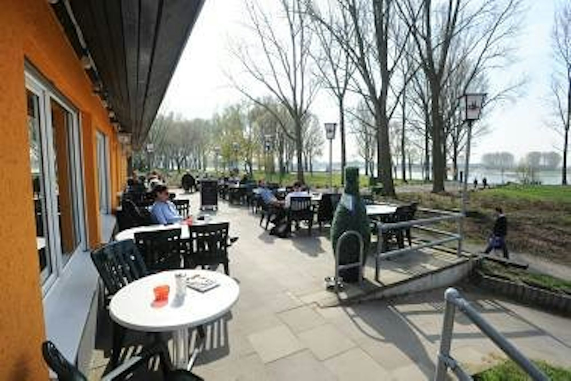 Besonderheiten: Die Hälfte des Biergartens am Rhein ist überdacht und windgeschützt. Außerdem werden Fußballspiele im Garten übertragen.