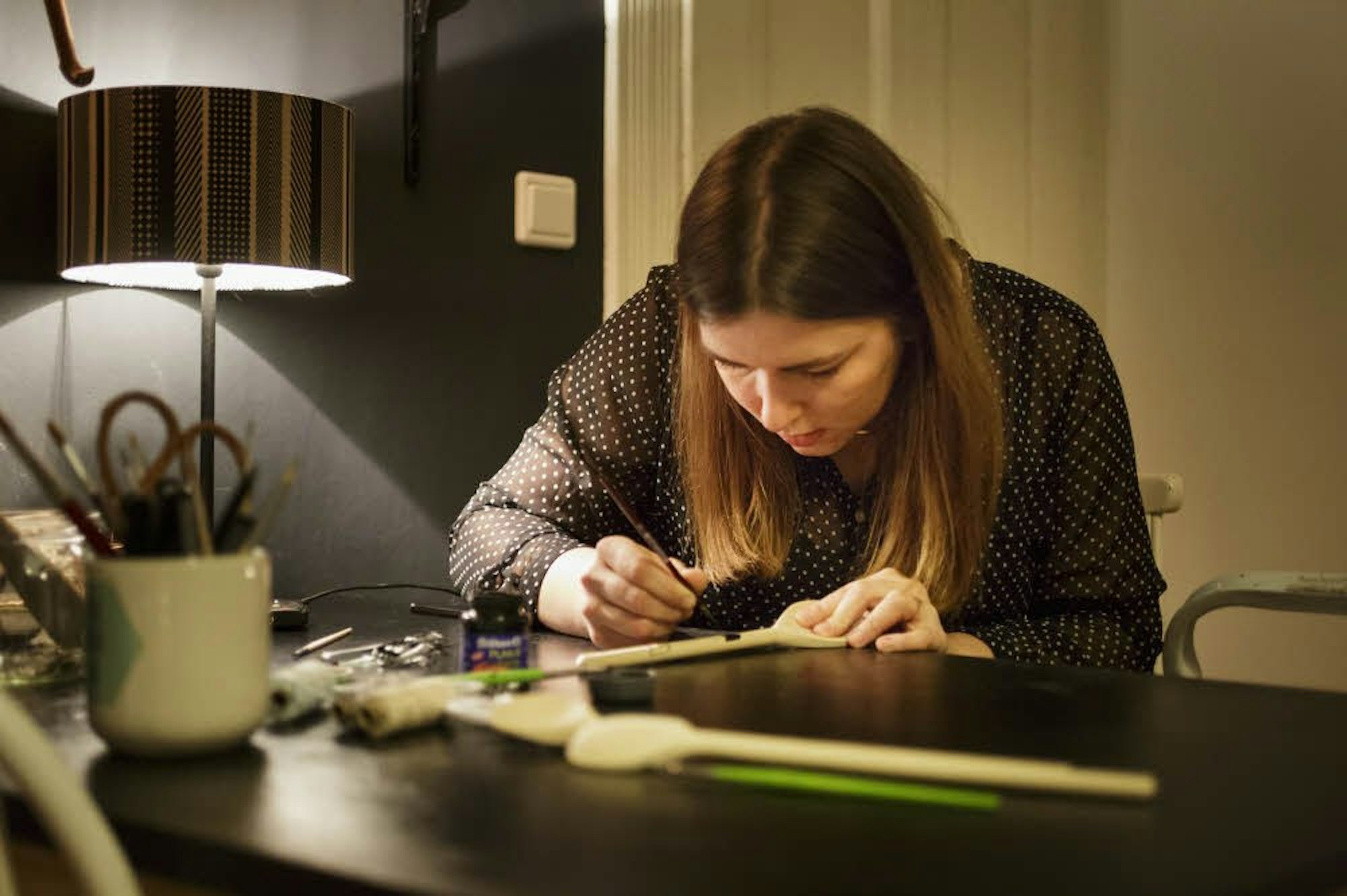 Antonia Oßwald bemalt für uns Kochlöffel.