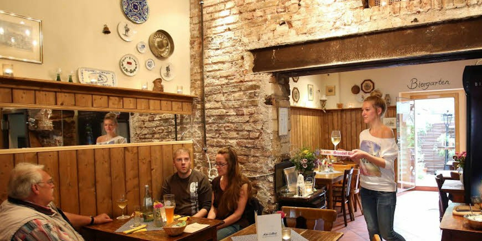„Ein kleines Wirtshaus im Veedel“ – klein stimmt nur bedingt. Zwar passen in den Innenraum lediglich 35 Gäste, doch noch sind Biergarten und Außengastronomie geöffnet.