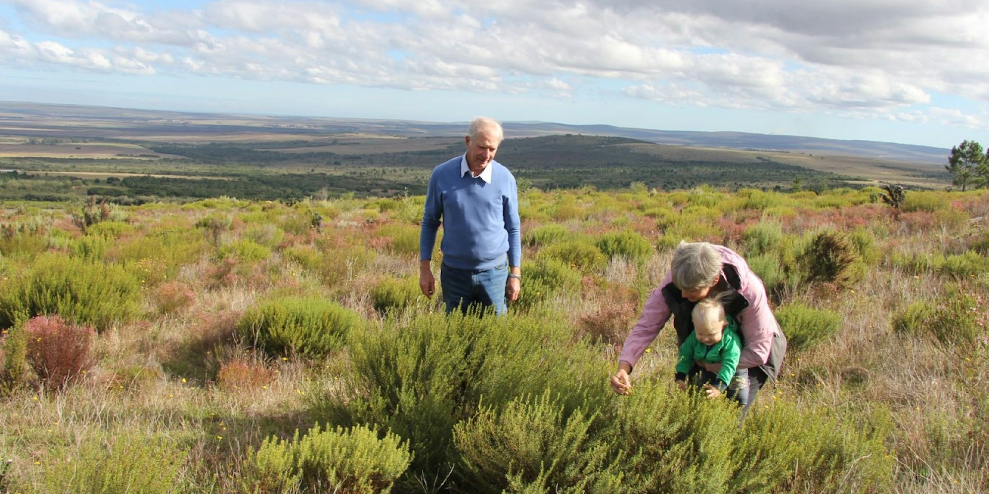 Ausflug ins Honigbusch-Feld: Van Zyl (l.) und Mona Joubert mit ihrem Enkel.