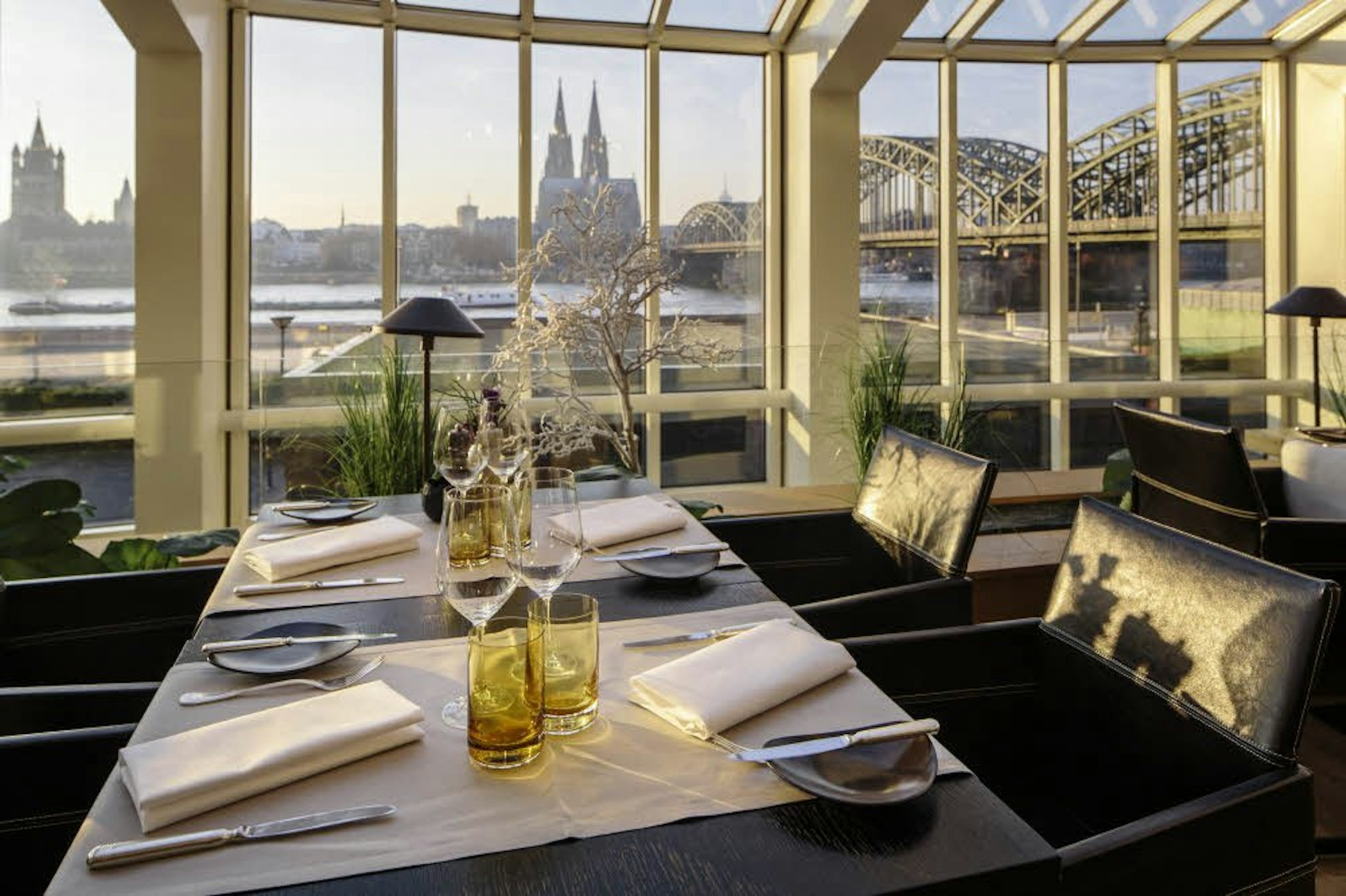 Im Restaurant Glashaus im Hyatt sitzt man unter Glas und hat außerdem den schönsten Blick auf Köln. Es werden internationale Leckereien und Sushi serviert. Wem die Regentropfen auf die Nerven gehen,verschwindet ins Erdgeschoss und hält sich an der Bar an einem gut gemixten Cocktail fest. (lio)