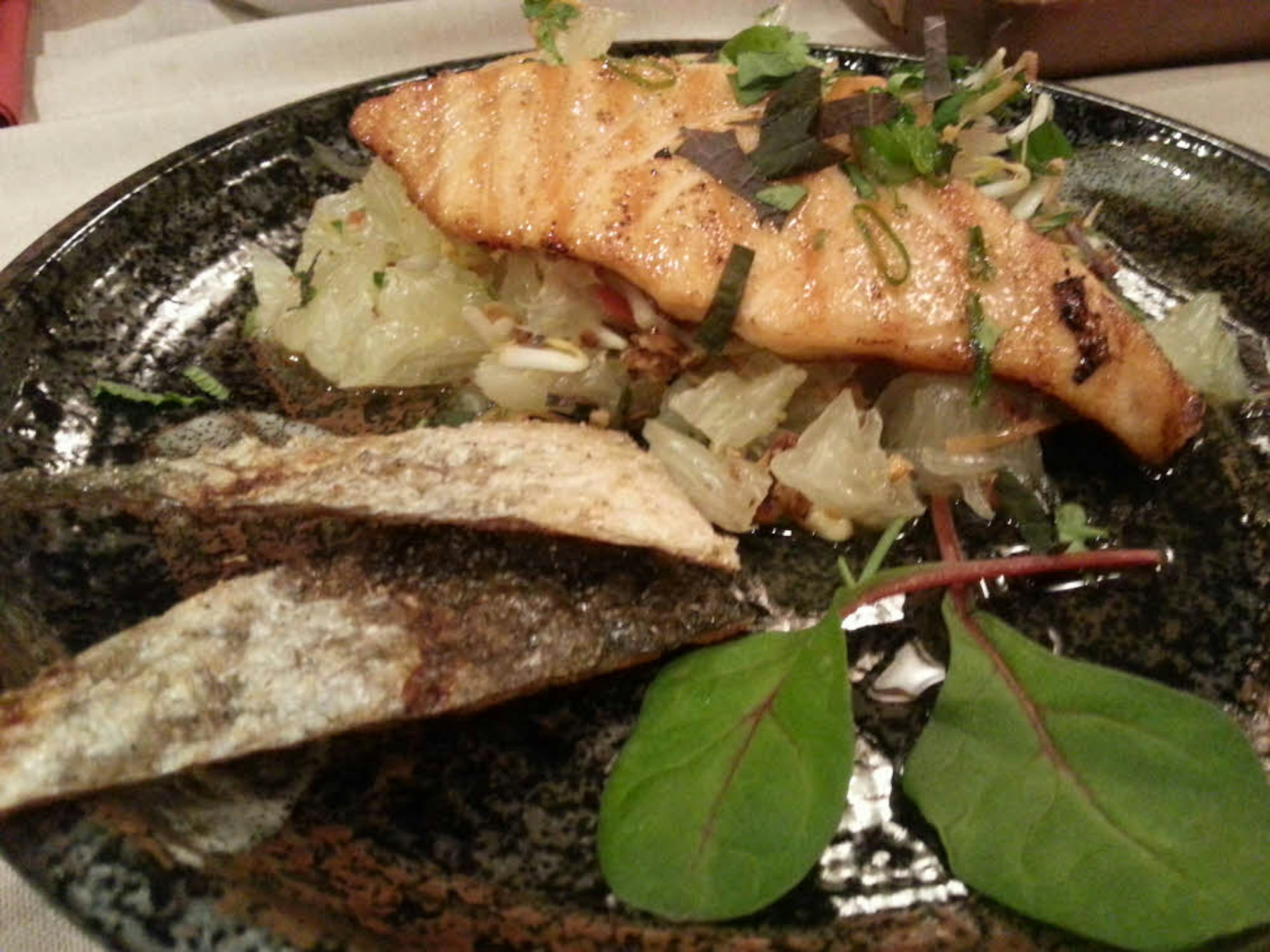 Goi buoi ca hoi – Pomelosalat mit Lachs und Fischhautchips // 8,90 Euro