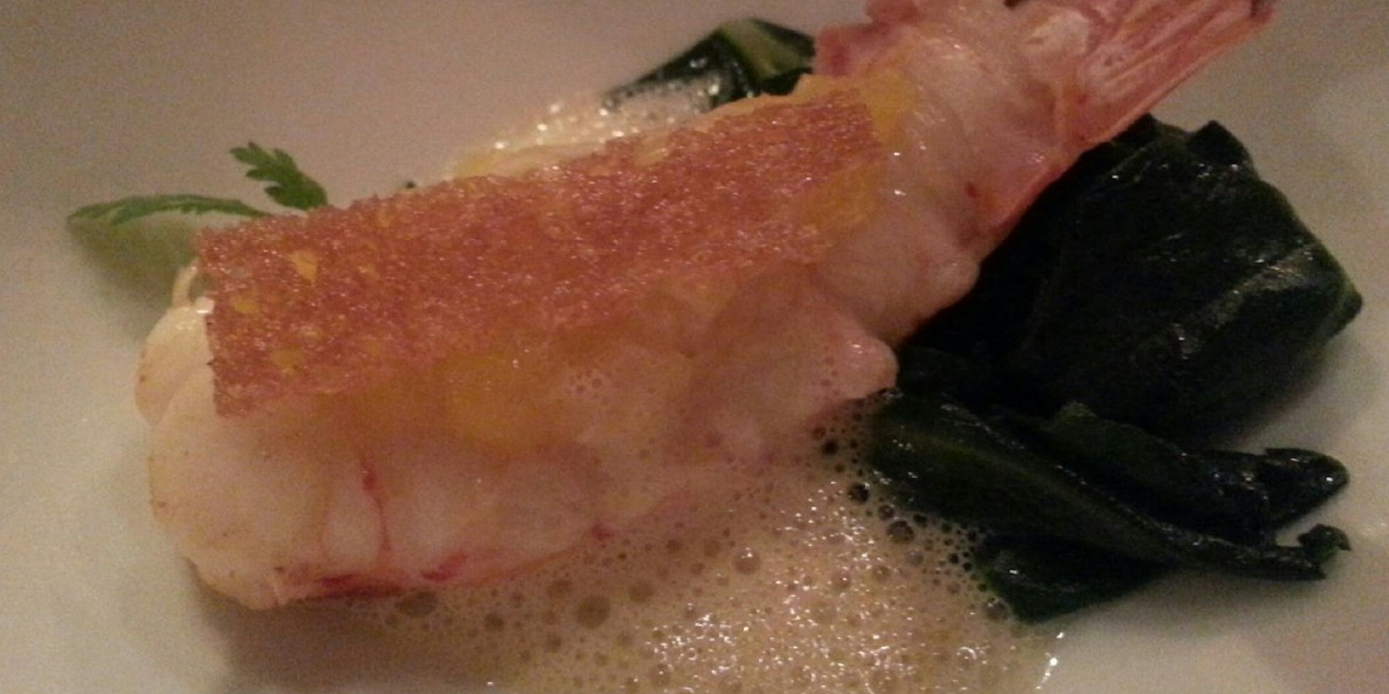 Großer Kaisergranat mit Yuzu-Zitronenconfit // 54 €Schnitte vom Vendée-Steinbutt in Champagner und Bohnenkrautsauce // 48 €
