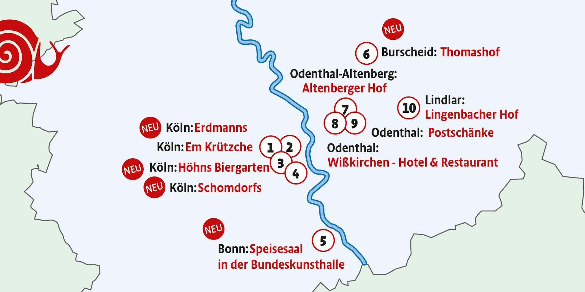 Ganz besonders am Herzen liegt der Bewegung, typische Gerichte der Regionen zu erhalten. Zum zweiten Mal ist jetzt der Genussführer für Deutschland erschienen. Darin werden nach Bundesländern sortiert Restaurants aufgeführt, die naturbelassene Produkte verwenden und auch sonst den Slow-Food-Kriterien entsprechen. Nebenbei erfährt man auch noch, wo man gut wandern oder Kanu fahren kann. Für Nordrhein-Westfalen sind insgesamt 28 Lokale gelistet, allein vier davon liegen in Köln. Auch Odenthal ist mit drei Restaurants stark vertreten. Ein Besuch lohnt sich auch in Bonn, Burscheid und Lindlar. Ein Auszug.