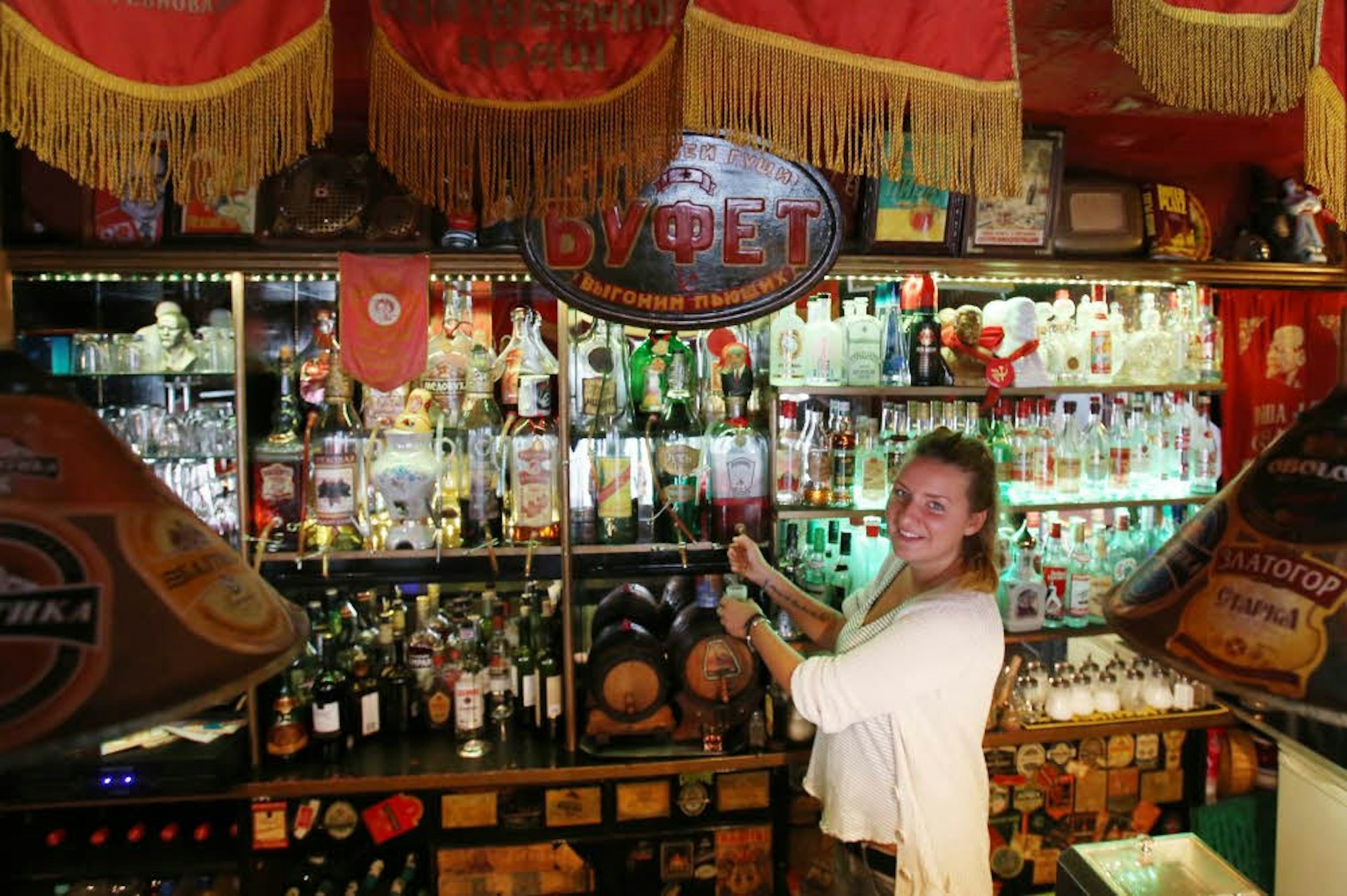 Das Restaurant ist bekannt für seine Wände aus rotem Samt sowie der großen Wodka- und Bierauswahl und erfreut sich großer Beliebtheit vor allem bei Studenten. Neben reichlich Alkohol kann hier aber auch gut gegessen werden: Blinis, Borschtsch und Pelmeni - die Klassiker laden zum Genießen ein…