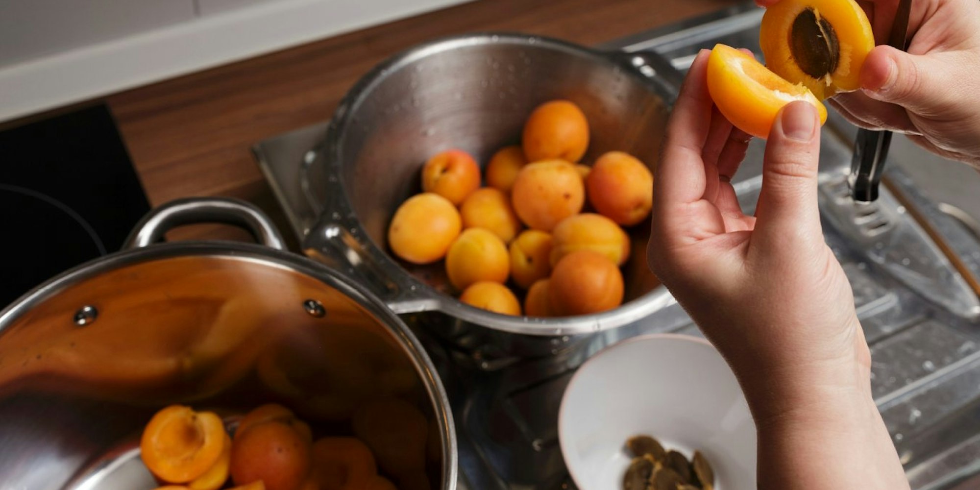 Zutaten:1 kg Aprikosen1 kg Gelierzucker 1:11 Zitrone1 Zweig RosmarinZubereitung:Die Konfitüre wie gewohnt kochen und den Zweig Rosmarin in so viele Stücke zerteilen, wie Gläser vorhanden sind. Beim Abfüllen darauf achten, dass in jedem Glas ein Stückchen Rosmarin landet.Ich rate ausdrücklich davon ab, den Rosmarin lose zu verwenden. Das endet darin, dass morgens die Nadeln vom Brötchen gekratzt werden.Anstelle von Rosmarin eignet sich auch Thymian oder Lavendel. Mit der Dosierung vorsichtig sein, sonst schmeckt die Marmelade schnell seifig.