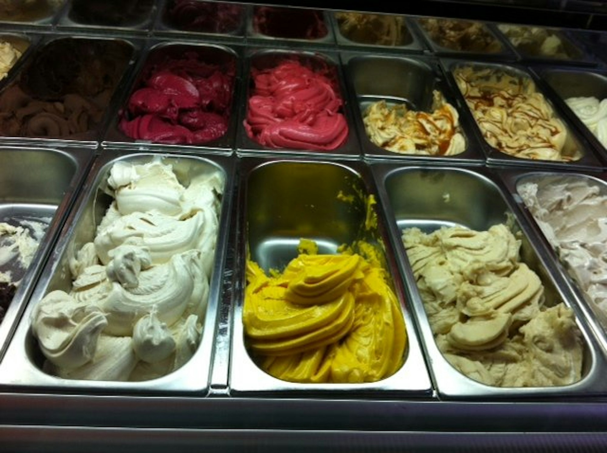 Die bunten Farben der Eistheke haben eine magische Anziehungskraft, wie hier im Eis-Laden Gea in der Kölner Südstadt.
