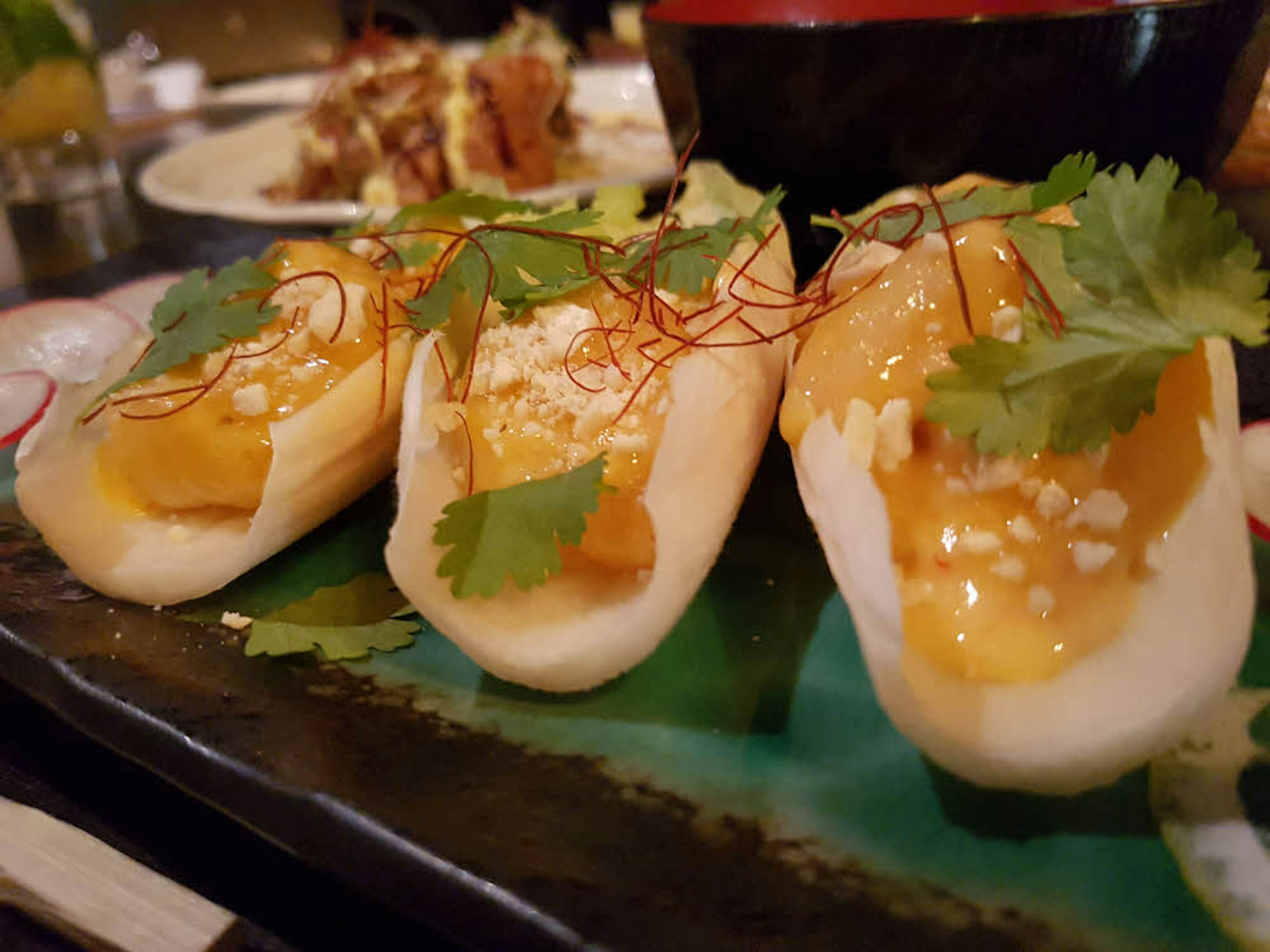 Es ist eines der pfiffigen und ungewöhnlicheren Gerichte im „Kaizen“, das auch Sushi und Sashimi sowie im Tempura-Teig Frittiertes bietet. Und mehr – denn das in diesem Jahr eröffnete Restaurant versucht eine Art japanischen Rundumschlag. Auch Gegrilltes entsprechend der Izakaya-Kultur wird aufgetischt. Ehrlich gesagt, macht mich so etwas häufig skeptisch: Wer meint, alles gut zu können, kann häufig nichts richtig gut.