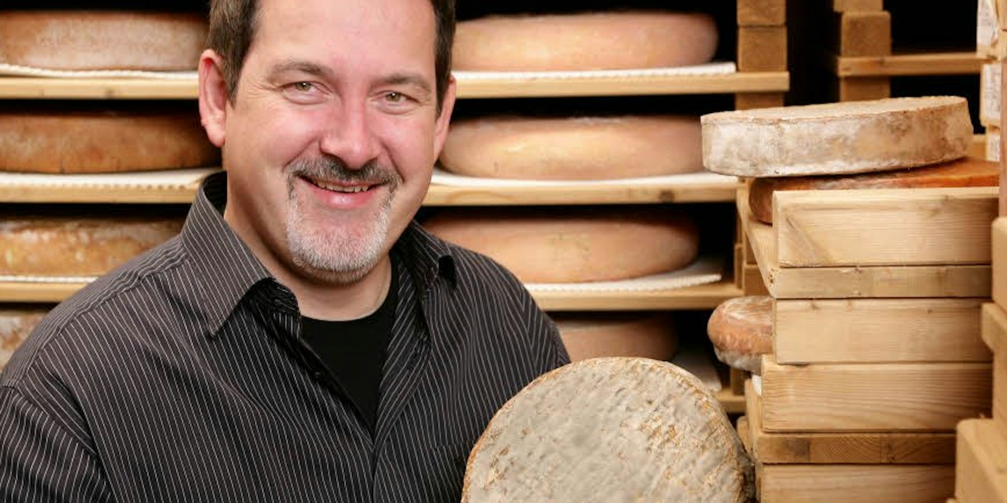Mein Beruf ist in Deutschland ziemlich unbekannt. Die meisten denken, der Käse kommt vom Bauernhof und landet in den Geschäften. Ich bezeichne mich als Bindeglied zwischen der Käserei und dem Kunden. Ganz wichtig: Wir reden immer und ausschließlich über Rohmilch, unbehandelte Milch. Ich kaufe den Rohmilchkäse, wenn er noch jung ist, vom Bauern und bringe ihn dann geschmacklich auf den Höhepunkt. Ich übernehme quasi das Käse-Tuning. Der Käse bekommt durch den Affineur eine Visitenkarte verpasst, eine geschmackliche Verfeinerung.