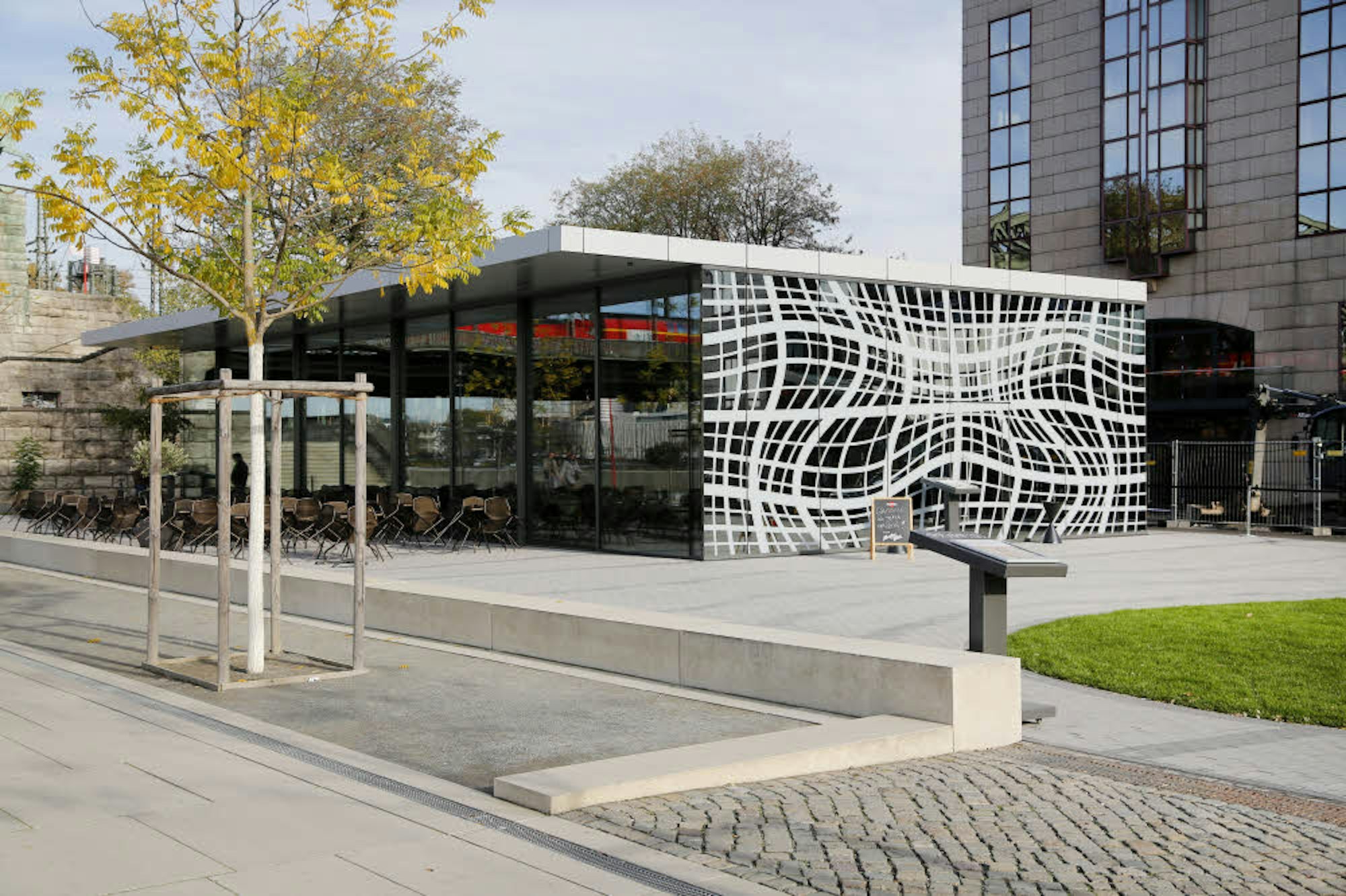 Abgesehen von der interessanten Äußerlichkeit sind die Kölner neugierig auf das Innere der zwei identisch großen Pavillons, die in den letzten Monaten an der Stelle des Hyatt-Biergartens entstanden sind: Die flachen Gebäude beherbergen jeweils ein Restaurant. Während das „Grissini“ nach Worten von Küchenchef Julian Waldner authentische italienische Küche offeriert, versteht sich das „Sticky Fingers“ als modern ausgerichtetes Streetfood-Lokal mit Selbstbedienung.