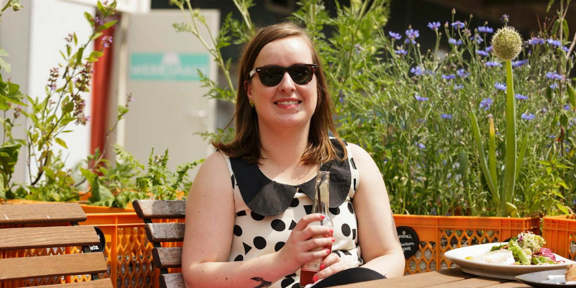 Umringt von einem Blumen und Pflanzen-Meer im Carlsgarten: KStA-Mitarbeiterin Julia Floß.