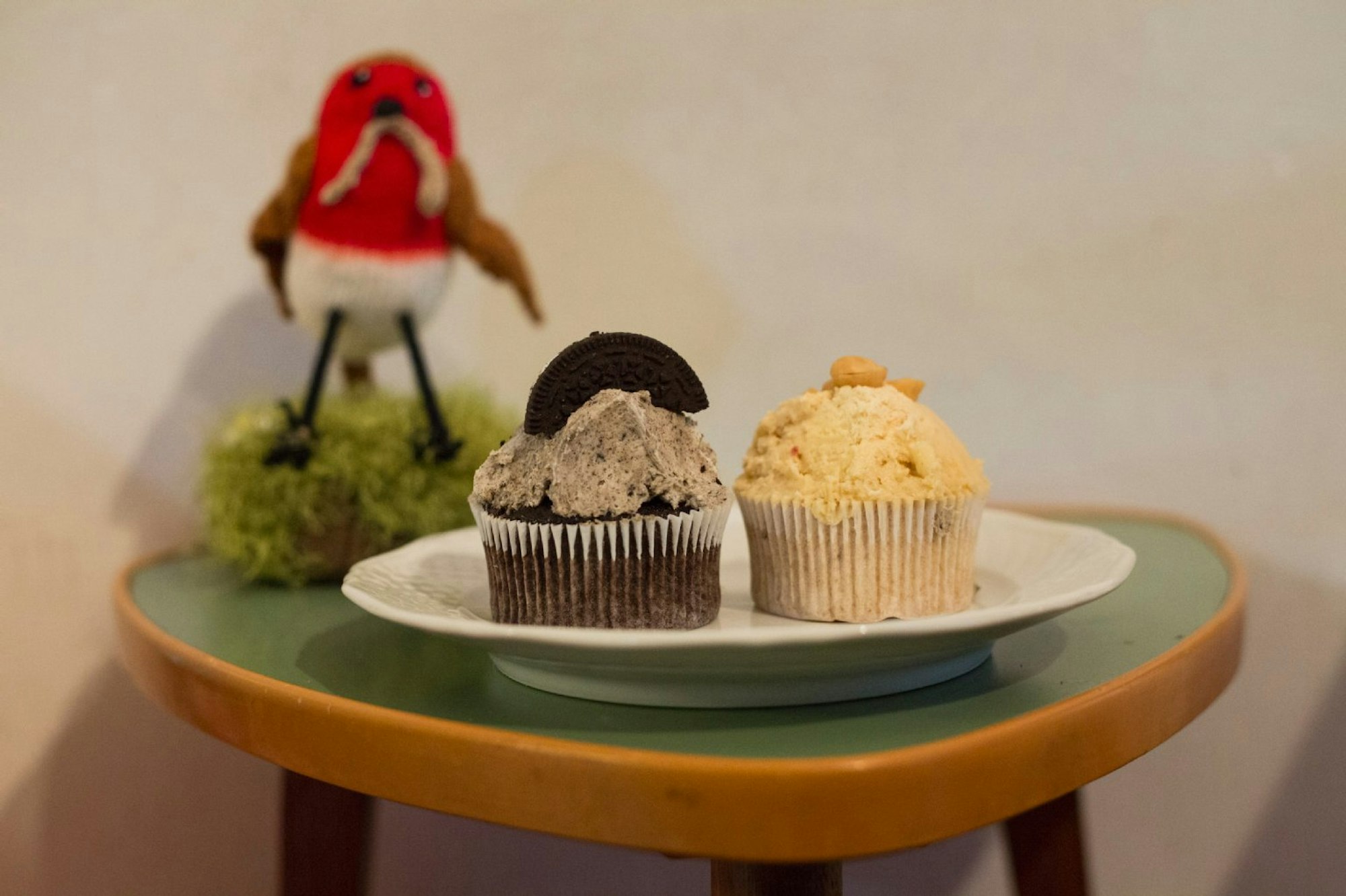 Der saftige Schokoladen-Cupcake mit Karamellfüllung und Erdnussbuttercrème stand mir schon häufig wahlweise als Tröster oder Belohnung zur Seite. Heute bedarf es aber etwas mehr Finesse: „Einmal Grace Kelly, bitte.“ Das Vanilletörtchen mit Brombeerfüllung ist dank seinem pistaziengrünen Schokofächer genauso schön und elegant wie seine Namensgeberin.