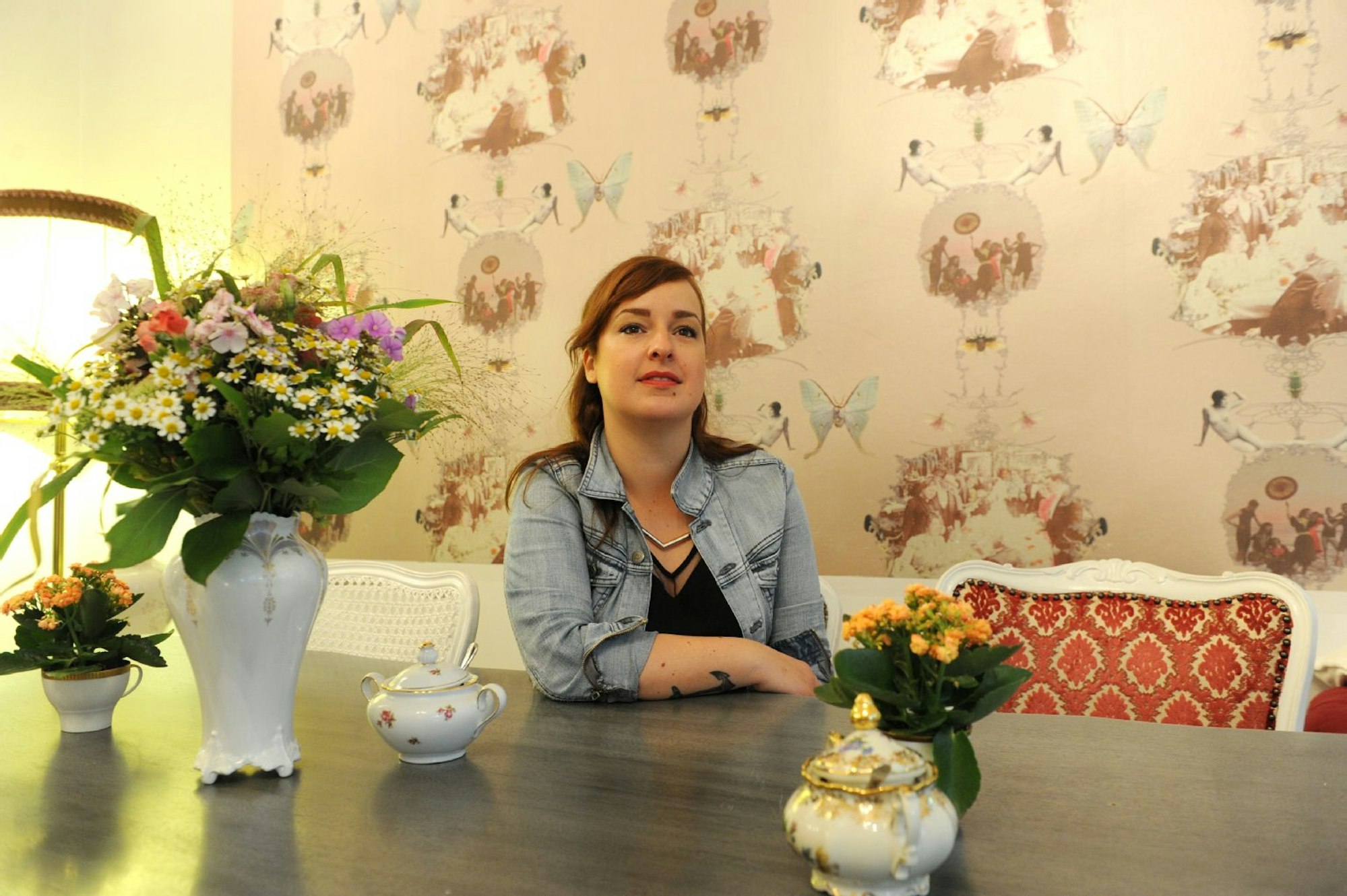Julia Floß genießt ihre Zeit in der Villa Mathilde. Das Wohnzimmer ist ein bisschen Barock, ein bisschen 50er-Jahre.