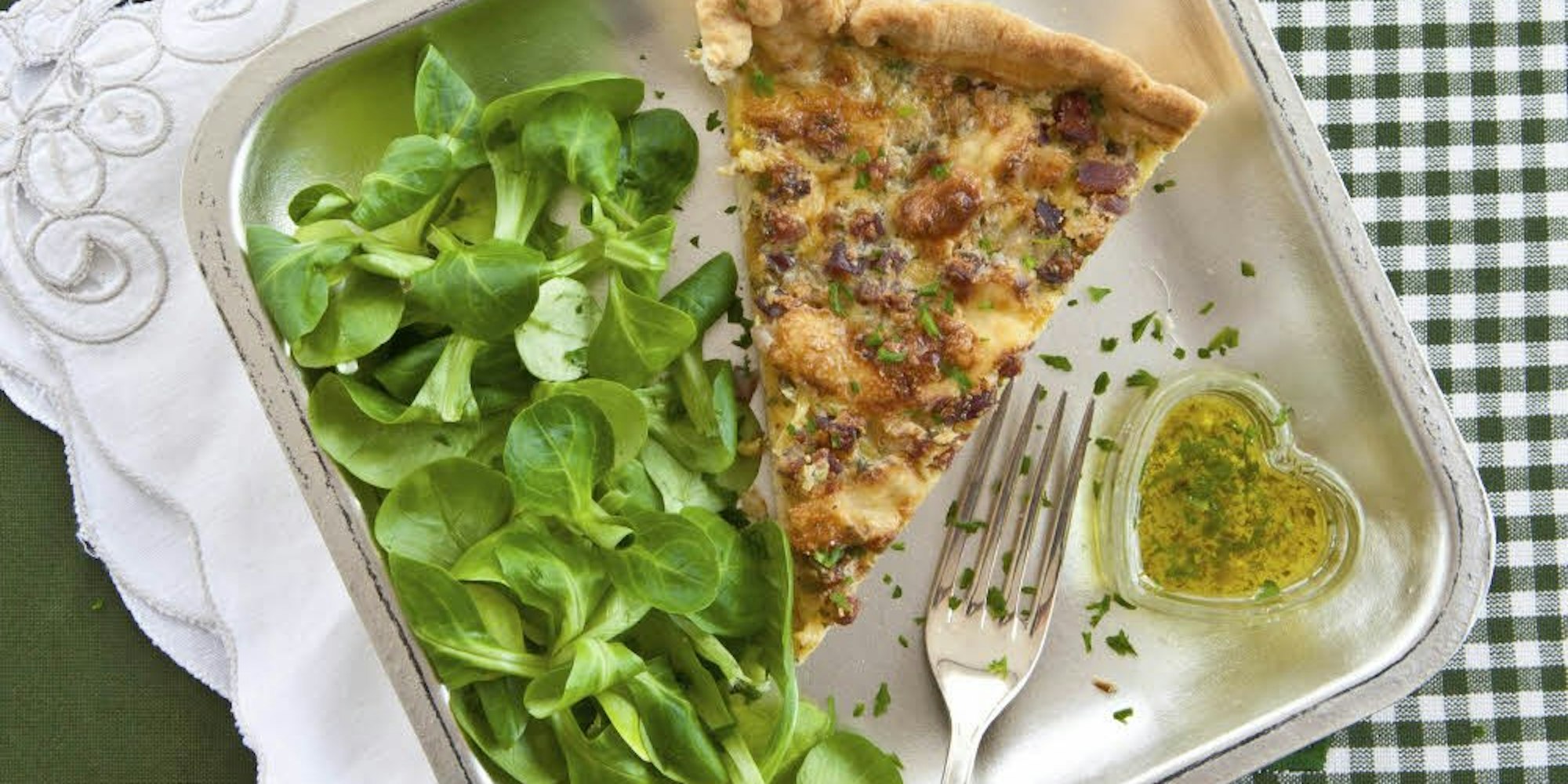 Eine Quiche Lorraine macht sich gut zu einem herbstlichen Salat.