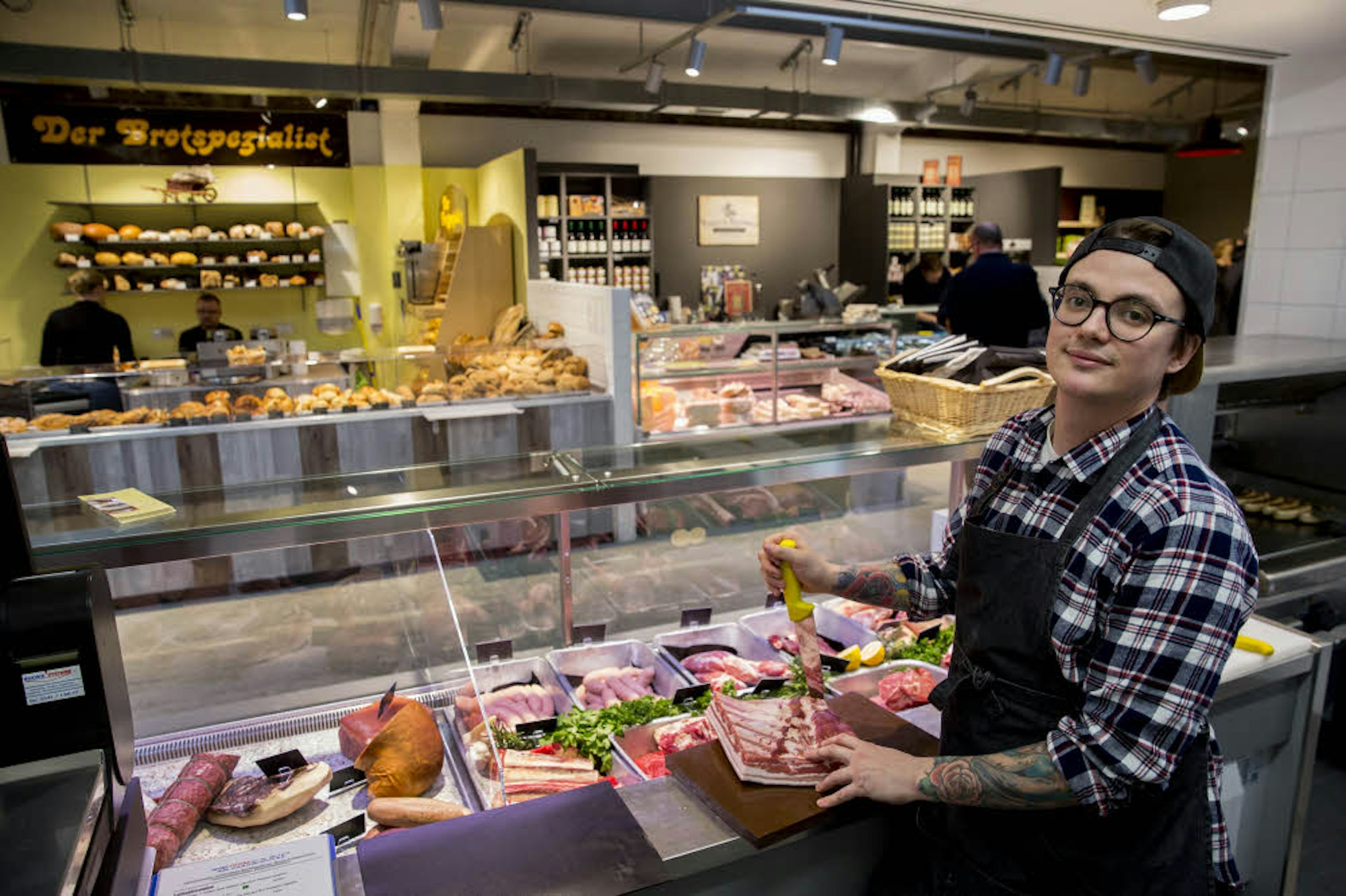 Ungekrönter König der Halle ist vielleicht Mark Junglas. Er ist nicht nur Metzger des Ladens „Lappen und Prengel“, sondern auch Lebensmitteltechniker und Jäger. Wild, das er verkauft, schießt er selbst. Und auch bei allen anderen Tieren achtet er auf Herkunft und Haltung. Mit einem Stück Fleisch bekommt der Kunde auch immer eine Geschichte eingepackt.