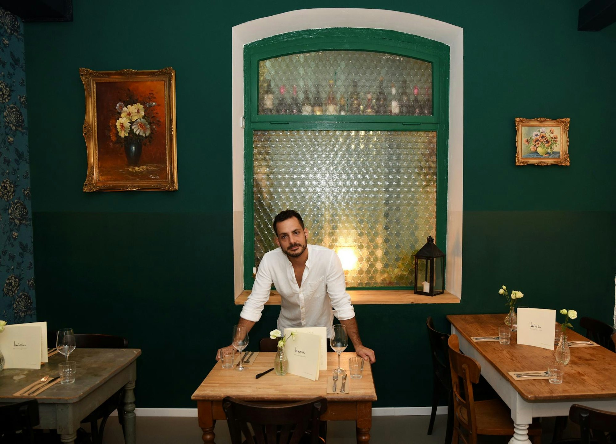 Koch Dario Giaquinta inmitten der Einrichtung des Lokals, die von verschiedenen Flohmärkten stammt.