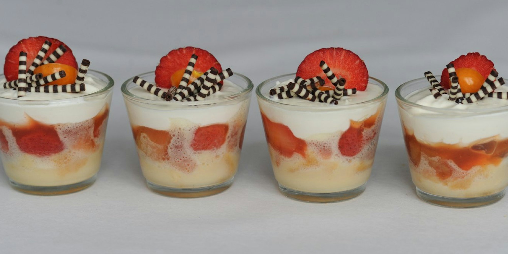 Leckeres fürs Oster-Buffet: Frühlings-Trifle mit Erdbeeren und Schokoröllchen