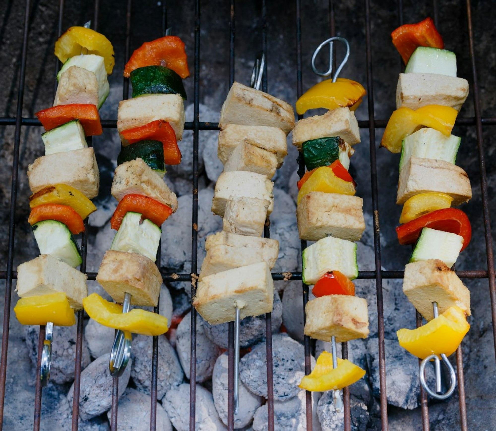 Nicht immer muss es Fleisch sein: Beim Grillen während der heißen Tage kommen Spieße mit Gemüse und Tofu auch gut an.