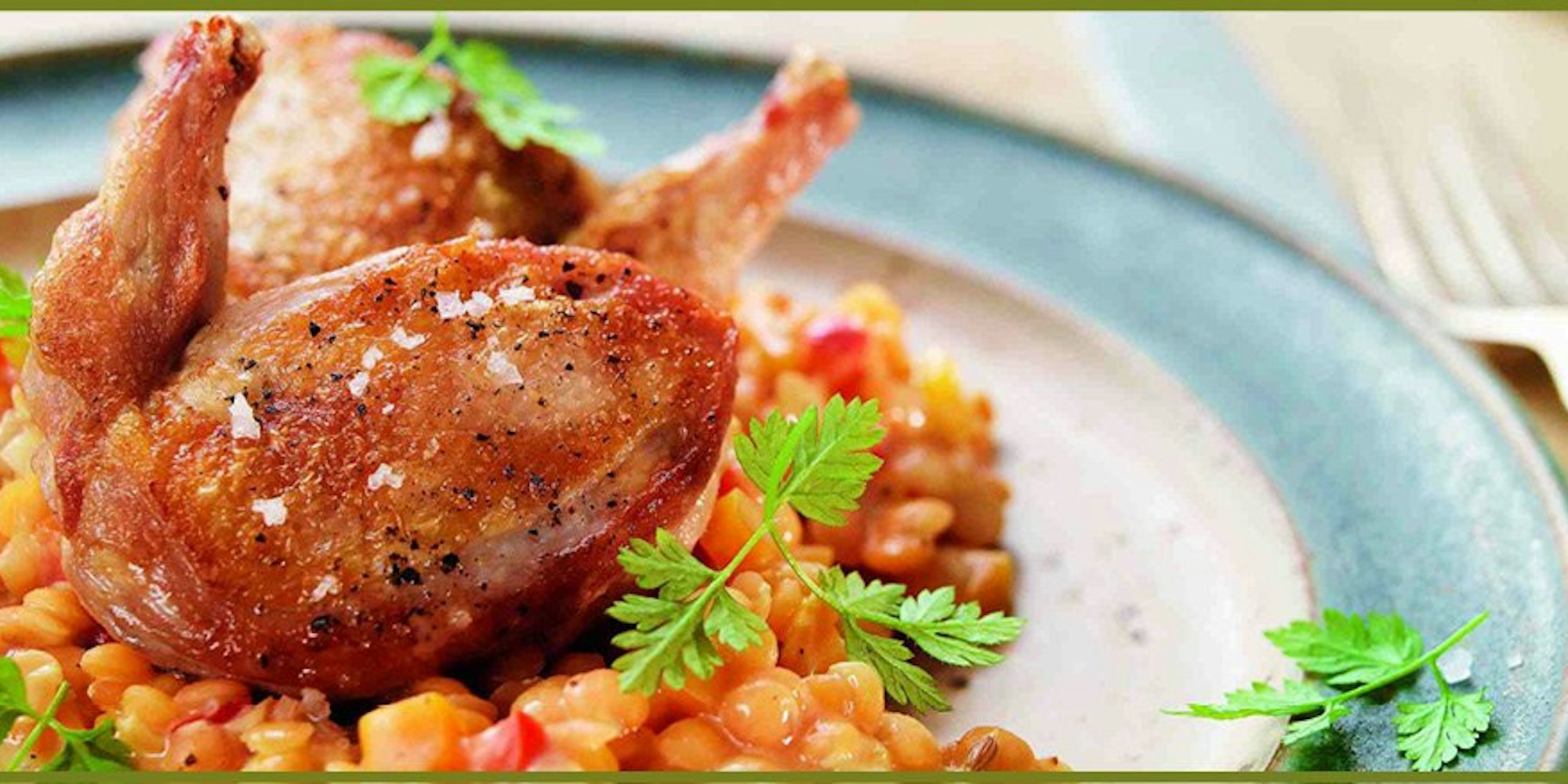 RezeptCremiger Rote-Linsen-Salat mit Wachtelbrüstchen