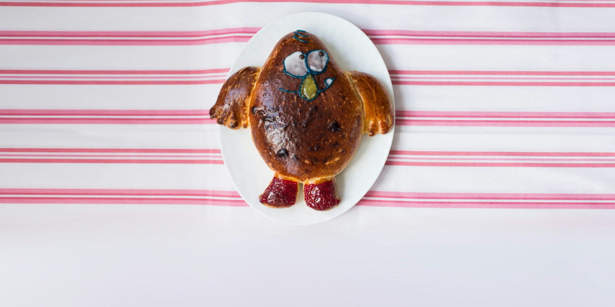 Den Stutenkarli vor dem Backen mit Eigelb einpinseln. Er sollte auf einer der unteren Schienen gebacken werden, sonst verbrennt das Eigelb zu schnell. Den Ofen nach acht Minuten auf 160˚C runterdrehen und weitere fünf bis sieben Minuten backen. Die Backzeit hängt natürlich von der Größe des Gebäcks ab. Wichtig: Er darf nicht zu trocken werden. Ich stelle den Ofen gerne einfach aus und lasse den Teig noch ein paar Minuten bei geschlossener Tür in der Resthitze garen.