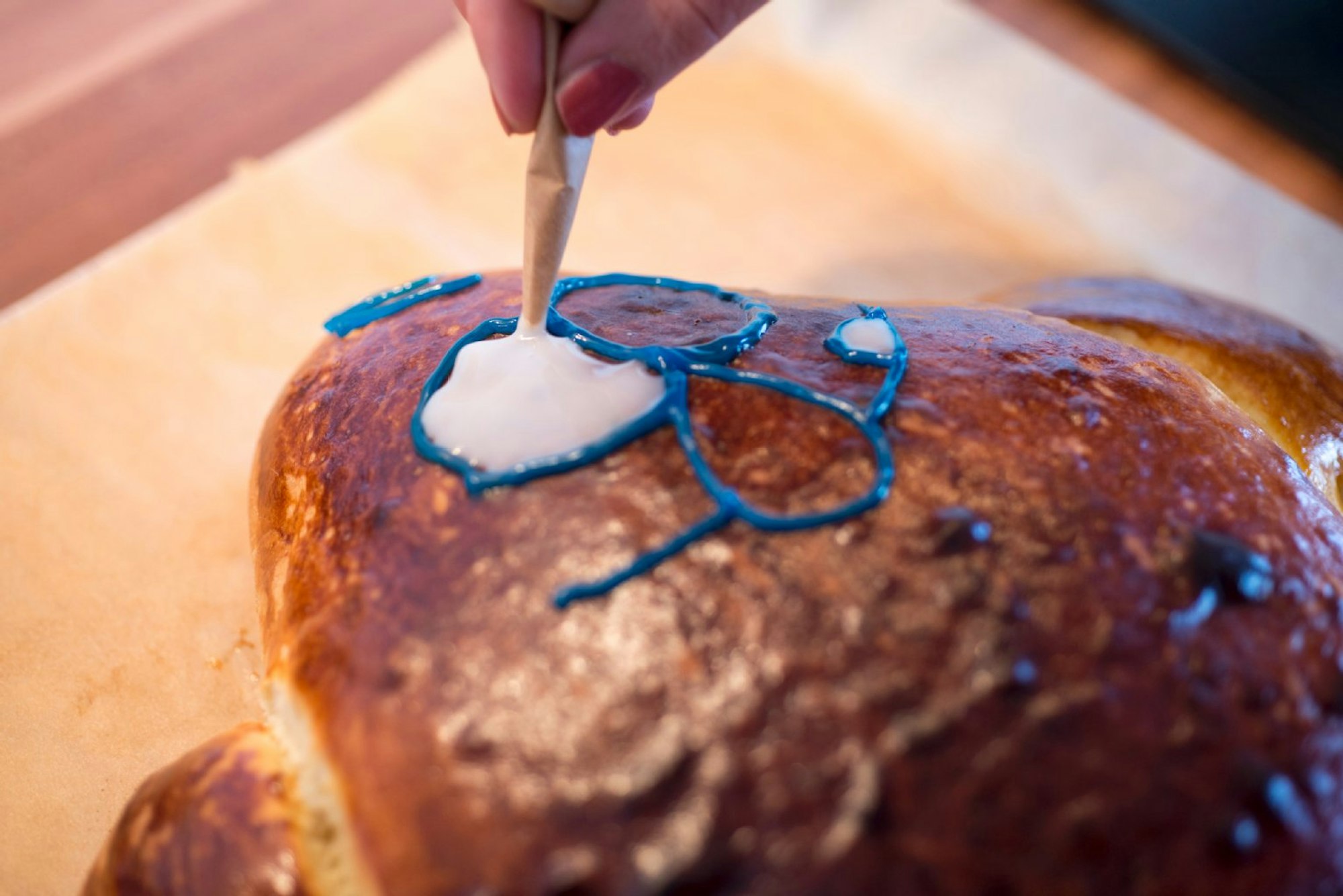 Nach dem Auskühlen den Stutenkarli mit Zuckerguss schminken