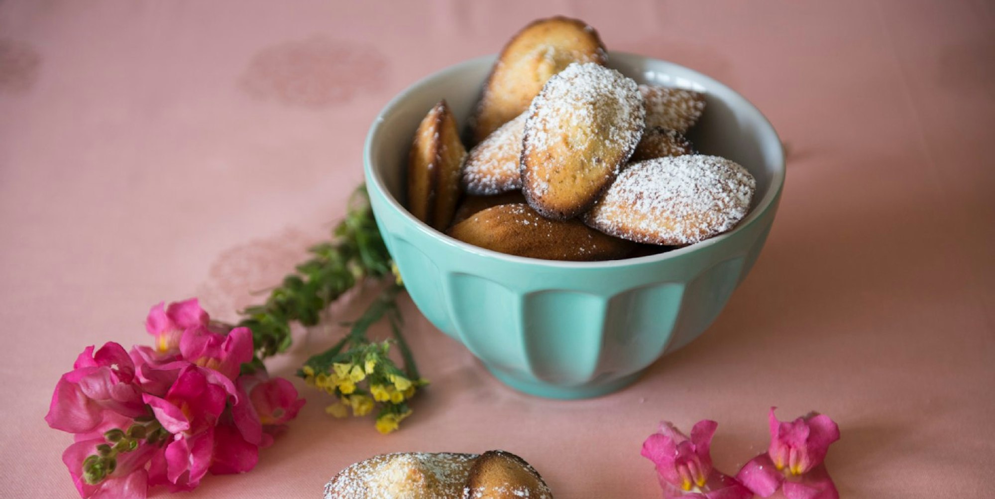 Das Madeleine-Blech einfetten und den Teig am besten mit Hilfe eines Spritzbeutels in die Form geben. Die Madeleines bei 175˚C circa 10 bis 12 Minuten goldbraun backen. Madeleines aus der Form lösen und auskühlen lassen.