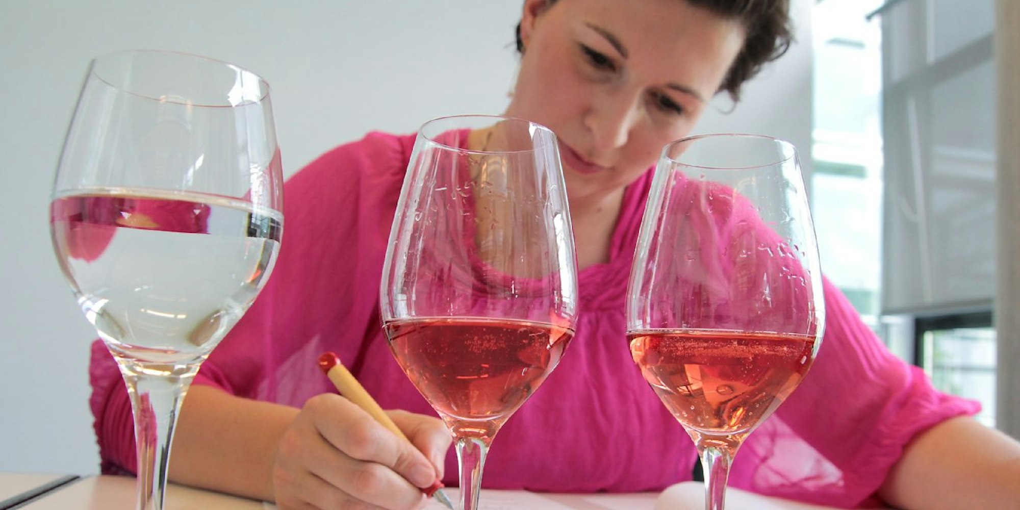 Magazin-Wein-Kolumnistin Romana Echensperger beim Test der Weine.