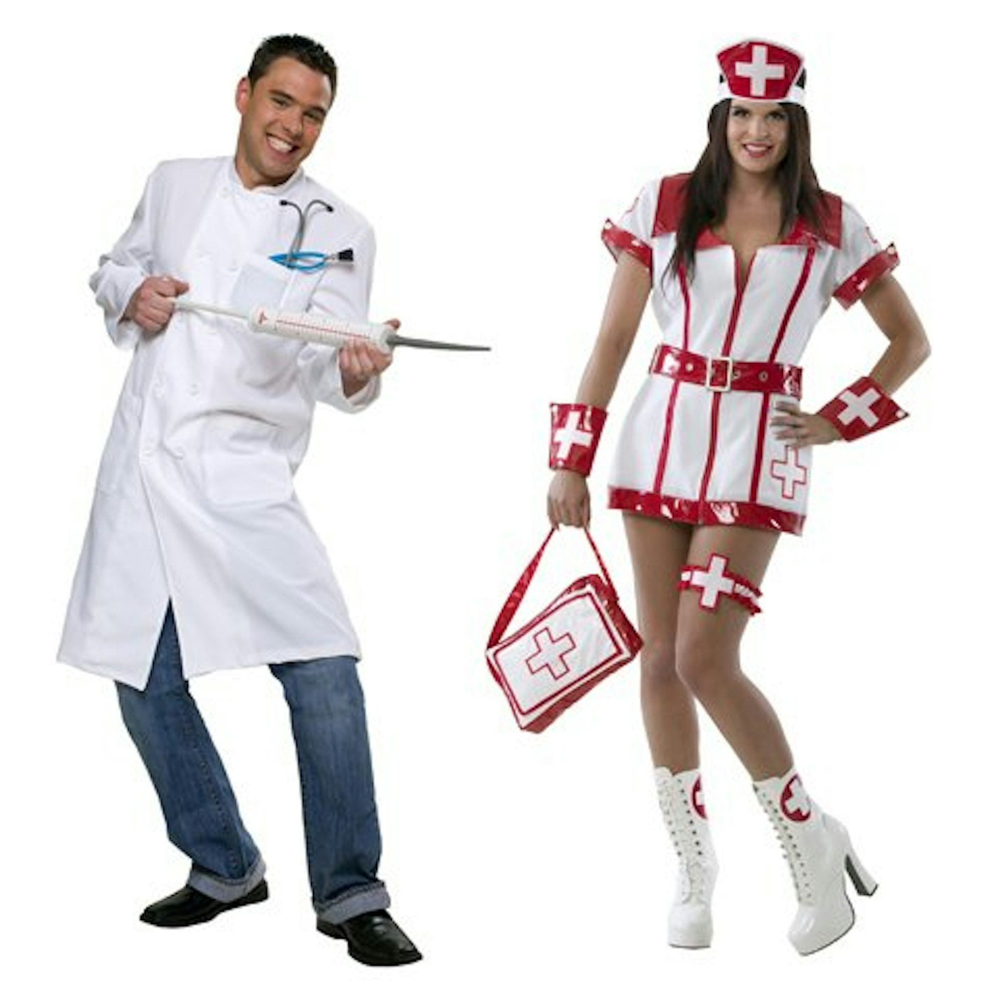 Ärzte werden realitätsgetreuer dargestellt. Und, das muss man dazu sagen, ein weißer Kittel und eine überdimensionale Spritze sind nicht sehr Geschlechtsspezifisch. Das, was der weiblichen Variante des Kostüms am nächsten kommt, ist das der Krankenschwester: Die sexualisierung hier ist zugegeben wenig überraschend. Noch so ein Klischee. Wer tatsächlich in einem Krankenhaus arbeitet weiß, mit Latex-Manschetten und wieder dem unerklärlichen Strumpfband übersteht man keine Nachtschicht. Nach einem Krankenpflegerkostüm sucht man übrigens vergeblich.