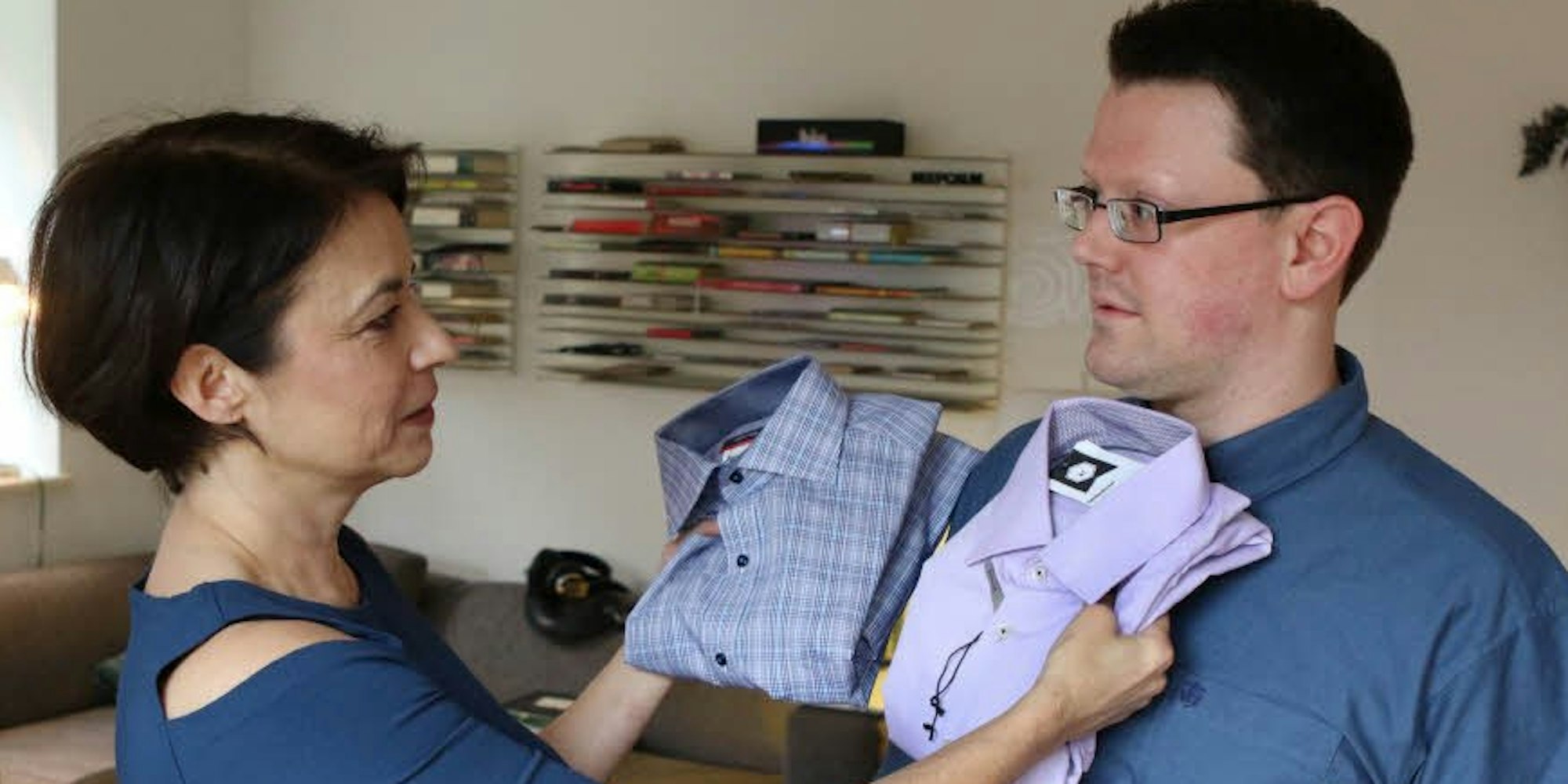 Marion Arndt prüft, welche Hemden unserem Autor stehen könnten.