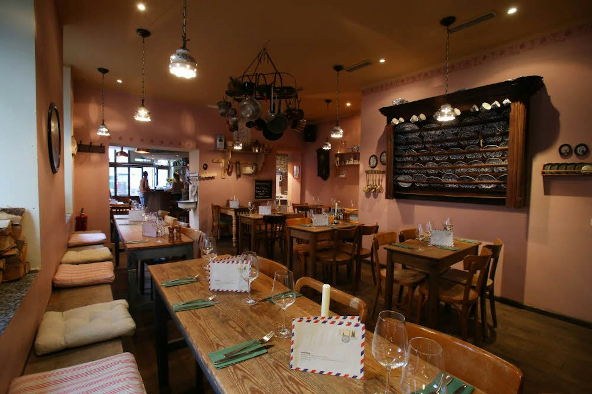 Ein erstklassiges, hochpreisiges Lokal in einer ehemaligen Druckerei im Süden Kölns, in Bayenthal - mit inszeniert chaotischem Interieur und gemütlichem Hof. Es gibt Speisen wie Confit de Carnad oder Austern.