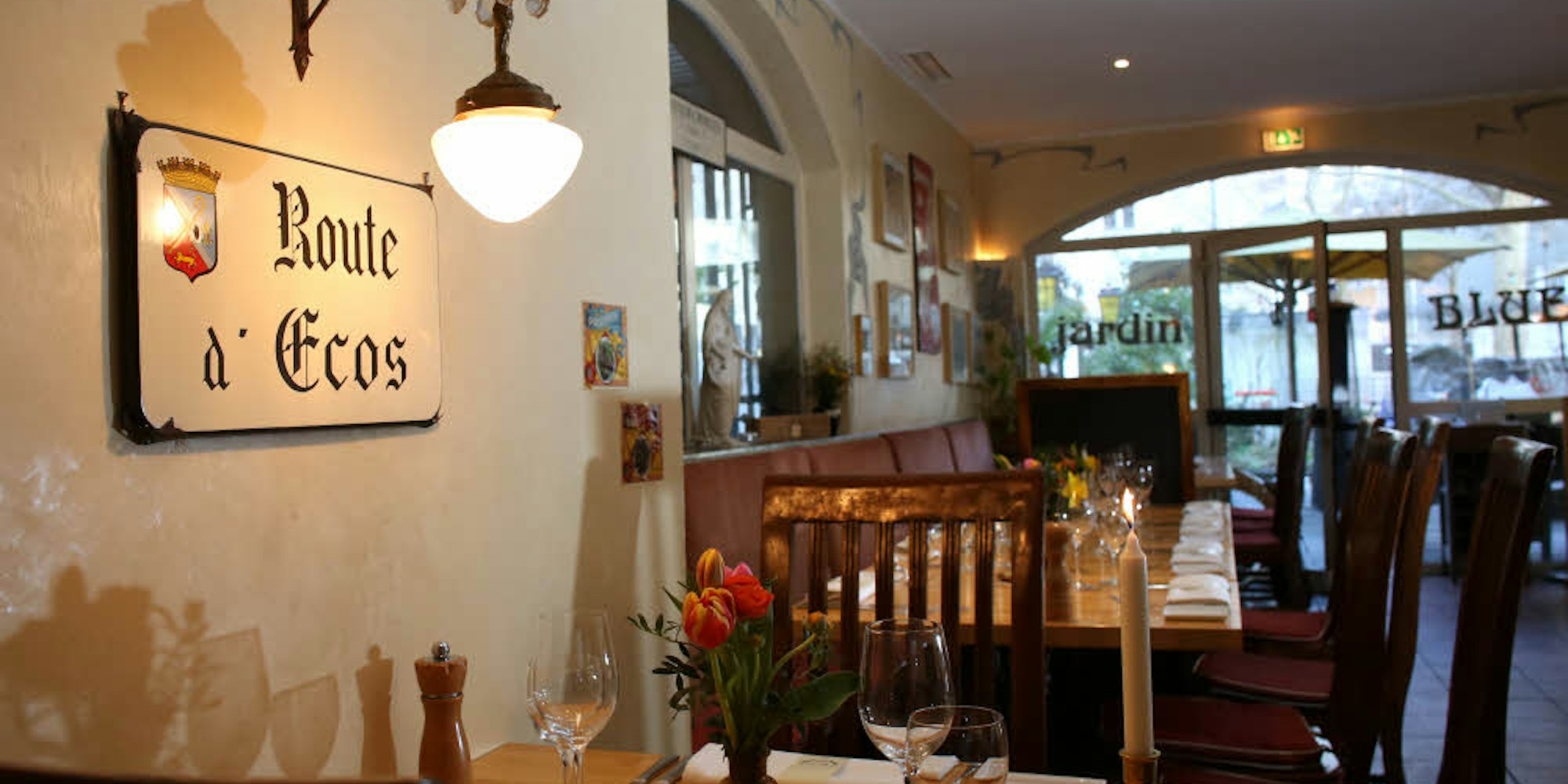 Das Maison Blue ist wie ein Stück Paris in der Kölner Südstadt, schrieb einst schon unsere Gastro-Expertin Julia Floß. Ob im Hof oder im Innenbereich, das Frankreich-Flair durchzieht sich durch alle Bereiche des Restaurants. Die Menü-Karte wechselt stetig.