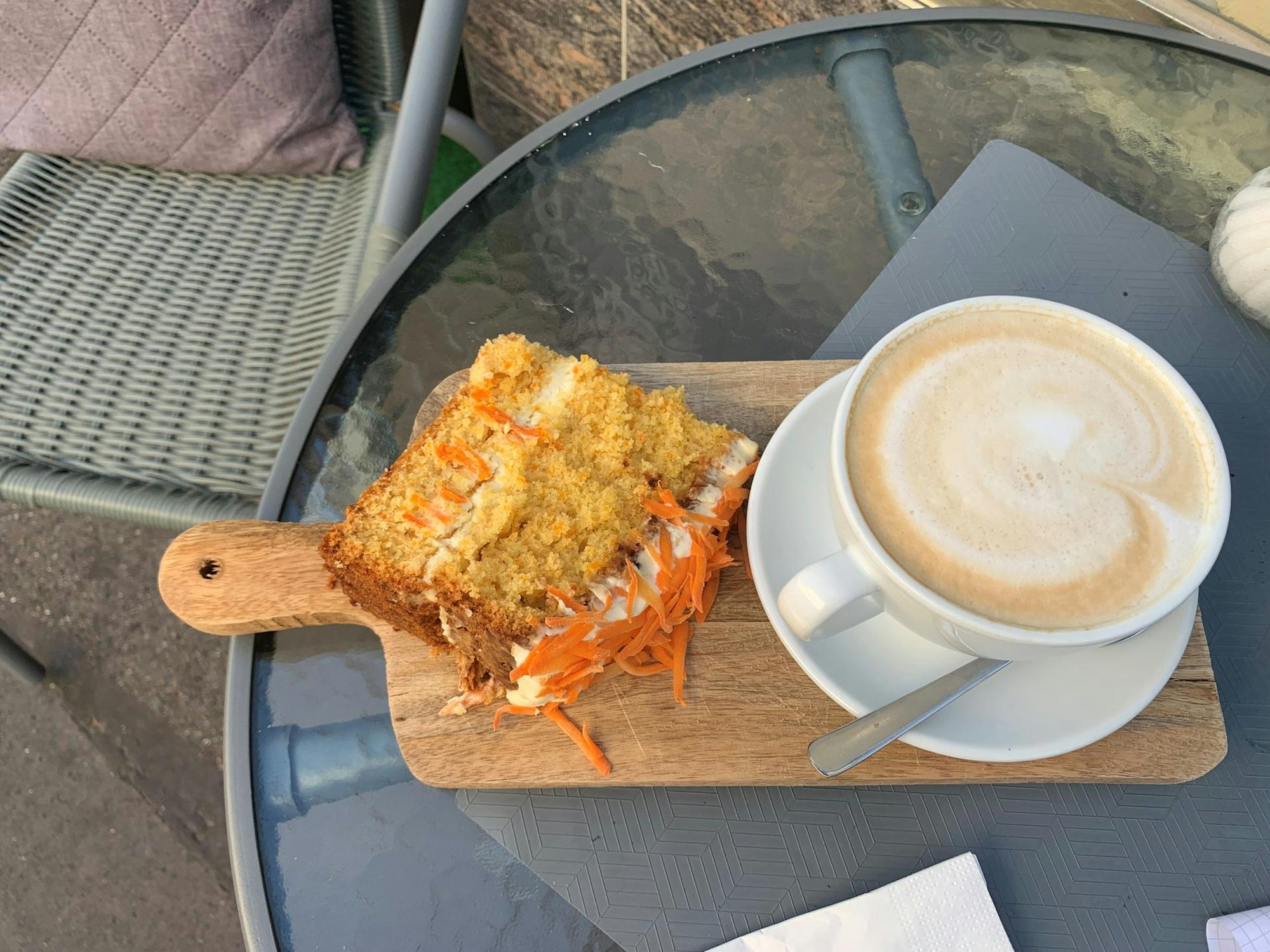 Hausgemachter Möhrenkuchen zum Cappuchino