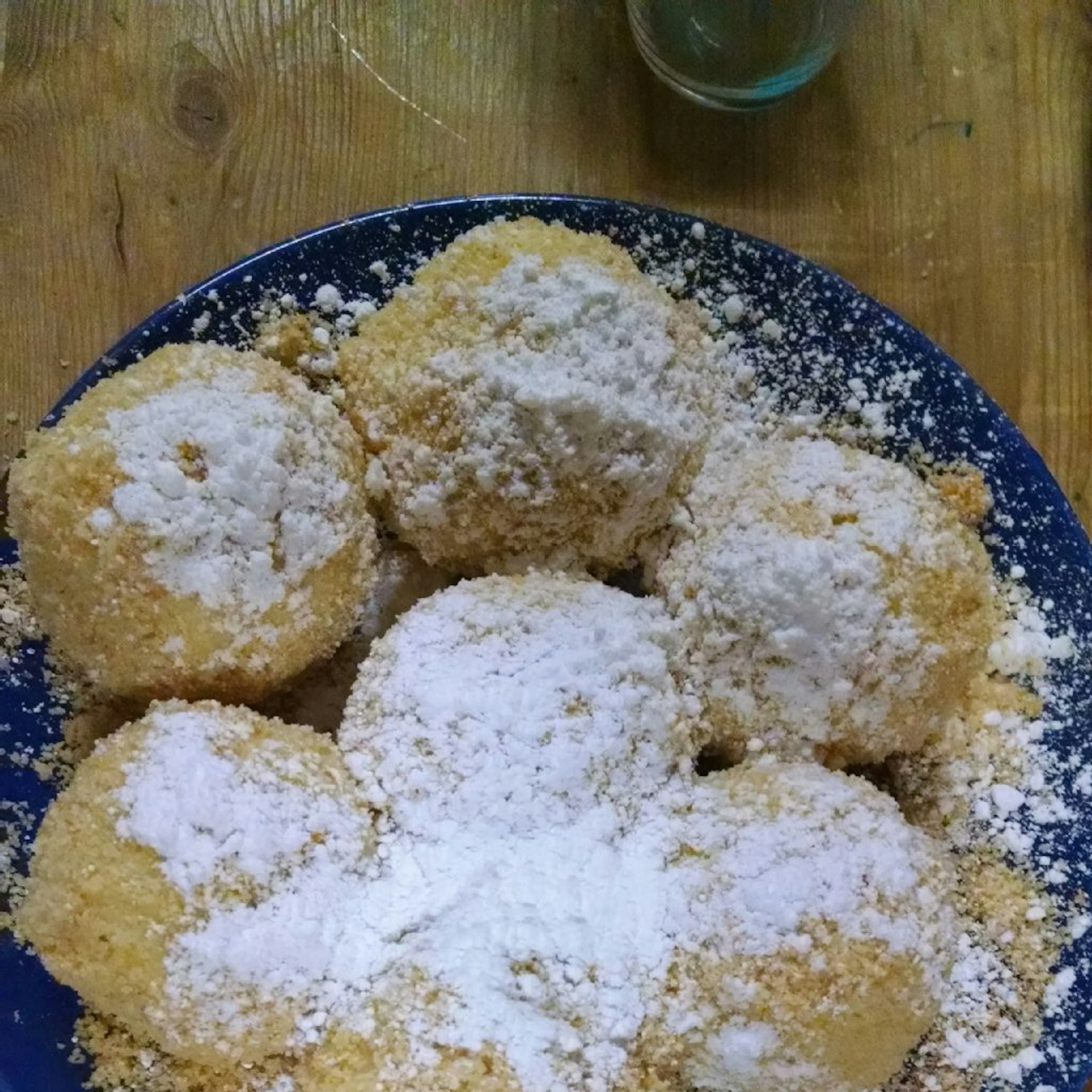 Zubereitung: Butter schaumig rühren, Ei und Prise Salz zugeben, Quark unterrühren, Mehl und Gries dazu.Eine Rolle formen von ca. 7cm Durchmesser. Rolle in Folie wickeln und mindestens 3Stunden kühlen.Inzwischen die Früchte halb einschneiden, Würfelzucker reinlegen.Von der Quarkrolle Scheiben abschneiden, mit der Frucht füllen und mit nassen Händen zu Knödeln formen.Leicht gesalzenes Wasser kurz aufkochen, die Knödel hinein geben und circa 20 Minuten ziehen lassen.Butter zerlassen, Brösel dazugeben mit Salz und Zucker würzen und etwas bräunen lassen.Knödel darin wälzen, eventuell noch flüssige Butter drüber gießen, servieren und genießen.Dazu gab es bei uns entweder Vanillesauce oder noch mehr zerlassene Butter mit Zimt und Zucker.