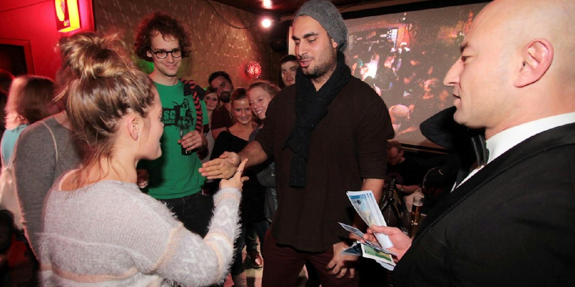 Schere-Stein-Papier in der Kölschbar in Köln.