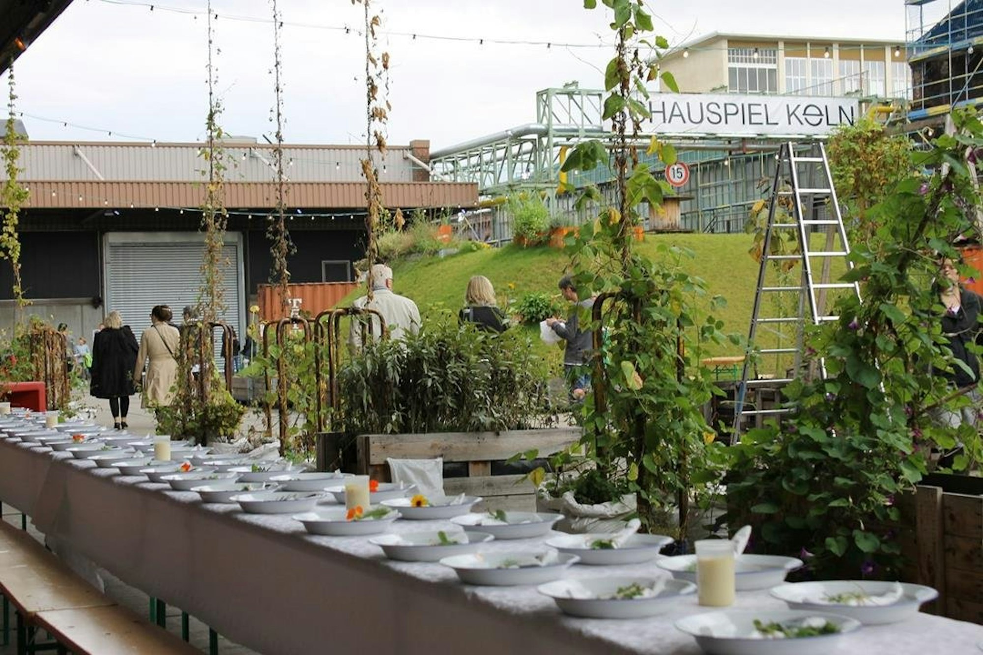Hier haben Mitarbeiter der Bühnen Köln an der Interimsspielstätte in Köln Mülheim einen Garten angelegt, der die kahle Industriefläche in eine kleine Oase verwandelt hat. Jeden dritten Sonntag im Monat gibt es einen großen Gartentag mit besonderen Aktionen. Darüber hinaus werden jeden Montag Gartensprechstunden und donnerstags gemeinsames Gärtnern angeboten.