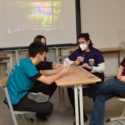 Dana und Eliza, „Peer Guides“ aus der Jahrgangsstufe 13, erzählen, dass sie zuerst selbst an einer Führung von Referenten des Anne-Frank-Zentrums teilgenommen haben, um dann Techniken zum Vermitteln des Gelernten zu üben. Ziel dieser Herangehensweise sei es, dass eine Lernatmosphäre entsteht, die auf Augenhöhe unter Gleichaltrigen stattfindet. Das Kulturamt des Rheinisch-Bergischen Kreises erhofft sich dadurch, dass das Sprechen über historische und aktuelle Themen auf diese Weise einfacher wird.